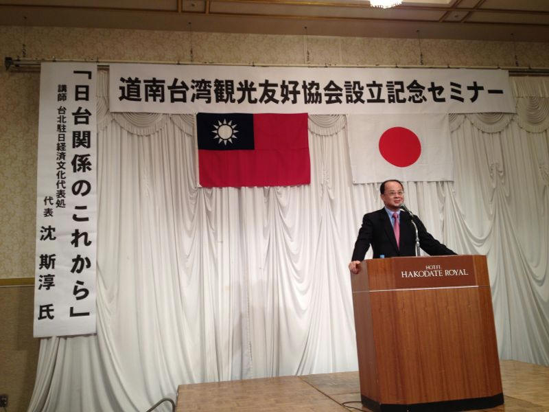 北海道・道南2市1町の5つの経済団体でつくる「道南台湾観光友好協会」(会長・石尾清広函館商工会議所副会頭)の設立記念セミナーが12月20日、函館市内のホテルで開催され、台北駐日経済文化代表処の沈斯淳代表が「日台関係のこれから」と題して講演を行った。約180人が参加した。