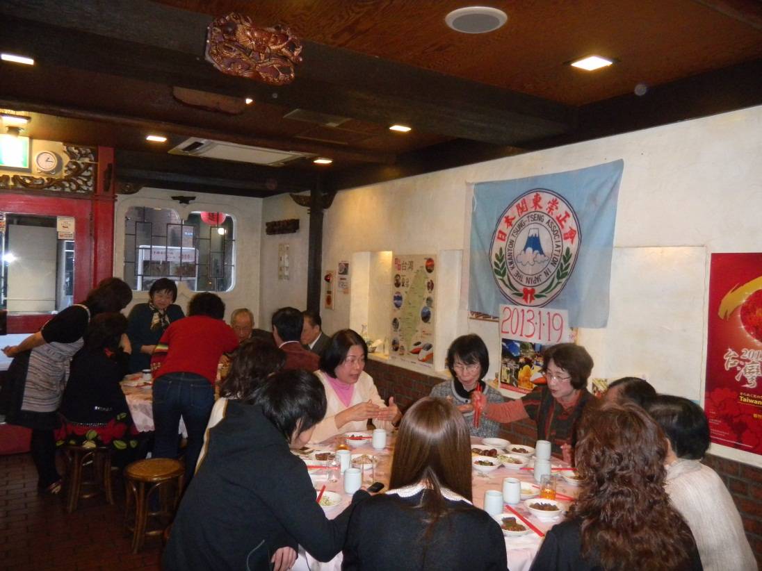 日本關東崇正會於1月19日,在新宿歌舞伎町的「台南担仔麵」餐廳舉行2013年的新年懇親會,包括從茨城縣遠道而來的副會長溫勝治,旅日歌劇家謝珠榮與多位理監事皆踴躍出席參加。