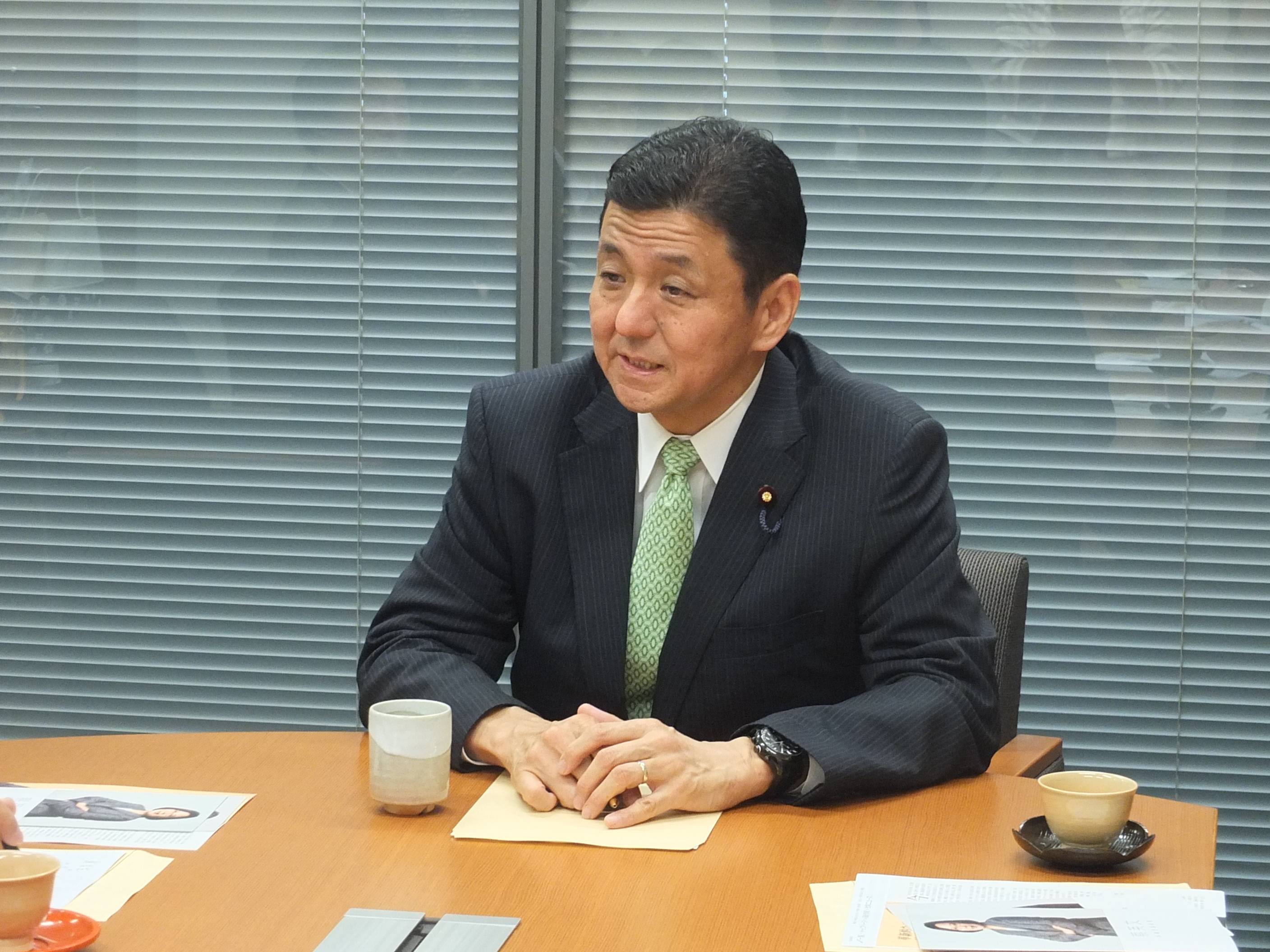衆議院外務委員長を務める岸信夫議員は5月30日、岸議員の国会事務所で開かれた亜東親善協会の大江康弘会長主催の座談会に出席した。