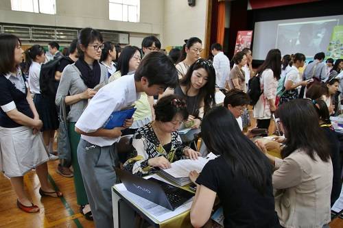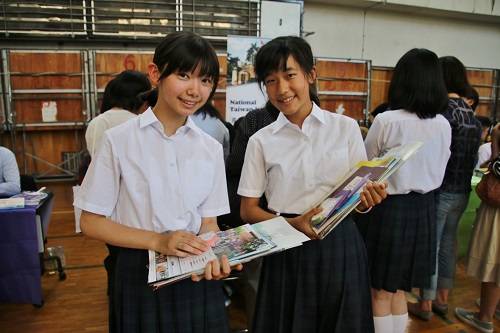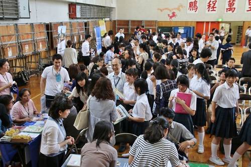 有意到台灣留學的東京中華學校中學2年級小笠原同學和陳同學,則在場內聽取各校的說明,她們希望可以到台灣留學活用中文,另外也有在場內一旁等候的家長表示孩子有意到台灣留學,當然贊成,因為有些學校的科系不一定會接受日籍學生,所以讓孩子自己來聽取說明,讓他們自己作決定。