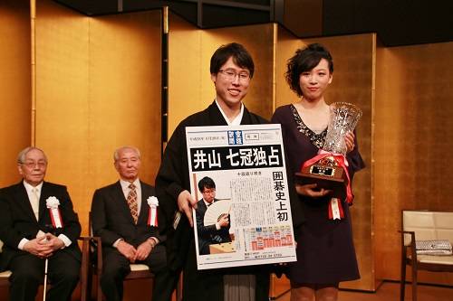 台灣旅日女棋士謝依旻於6月8日與日本圍棋界史上首位同時擁有7冠頭銜的棋士井山裕太,一起出席第54期井山裕太十段‧第28期謝依旻女流名人共同就位典禮,2人分獲日本棋院理事長和田紀夫頒贈允許狀,並由主辦單位產經新聞社長熊坂隆光頒贈獎盃和獎金。