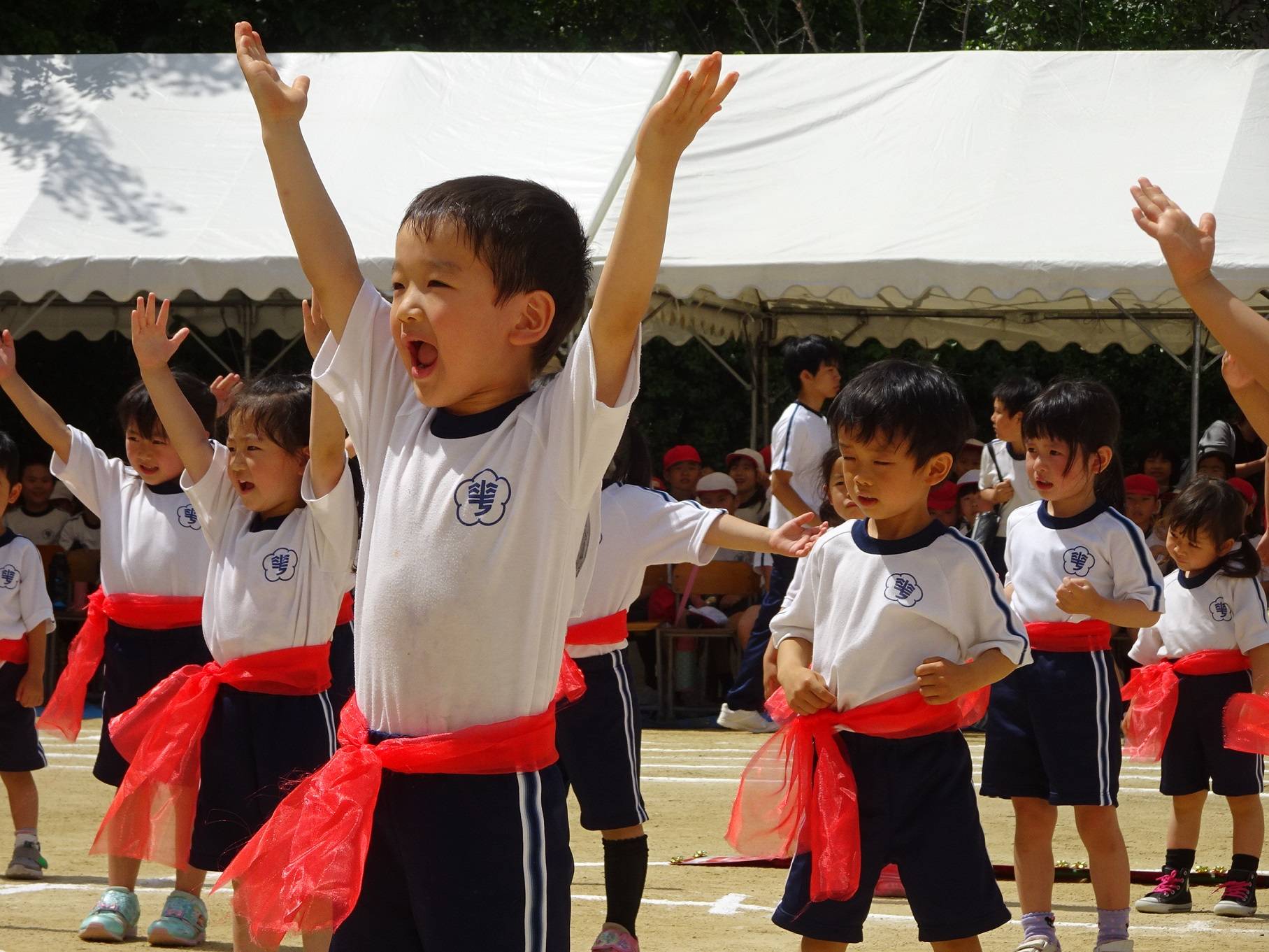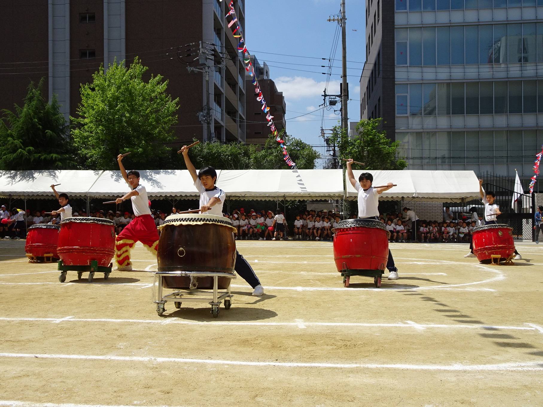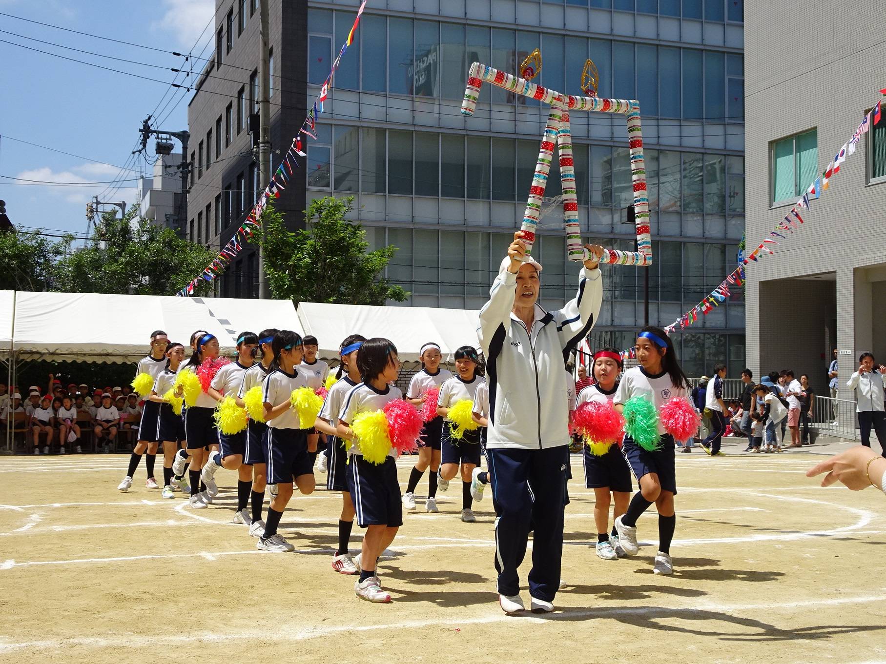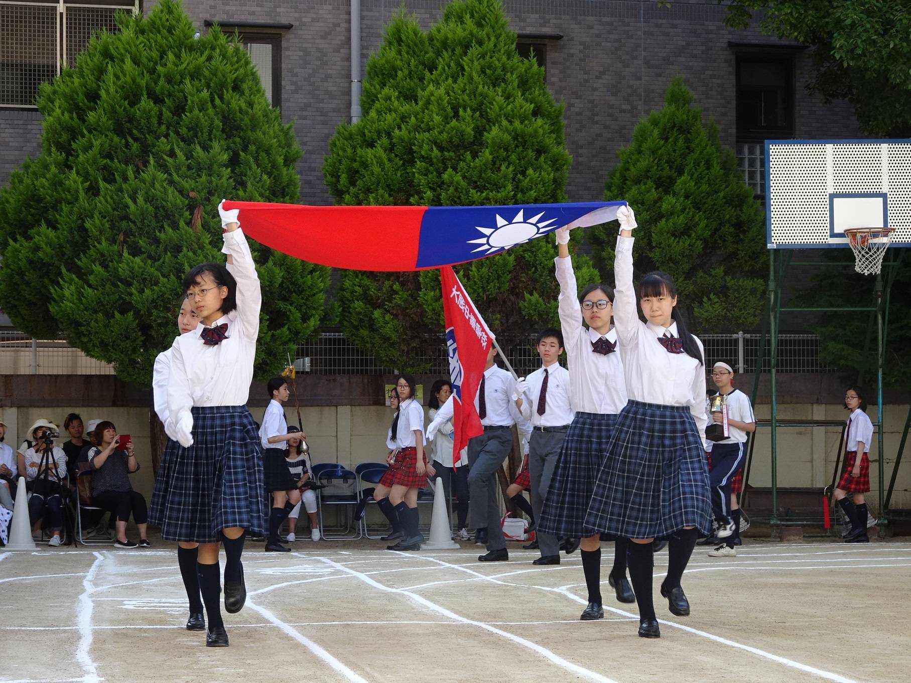 艷陽下,全體同學精神抖擻地踏步進場。校長陳雪霞表示,70年前,老華僑為了下一代能夠學習華語、傳承中華文化,出錢出力覓地建校,非常不易;創校至今,大阪中華學校也曾經歷風雨飄搖的日子,一路走來感謝僑界前輩們披荊斬棘的努力,感謝中華民國政府與各界的支援,希望同學們在運動會中展現強健體魄,同時以感謝的心回報各界的愛護與支持。