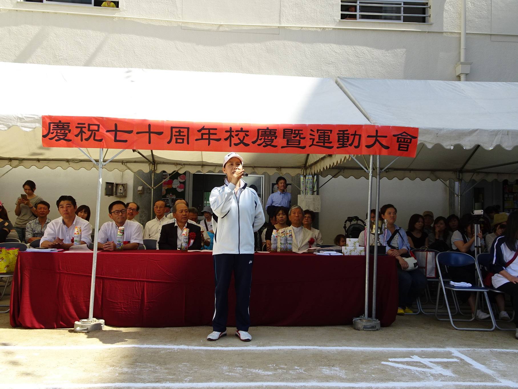 駐大阪辦事處處長張仁久勉勵同學們好好發揮平日練習的成果,勝不驕敗不餒,盡力爭取良好的成精,讓70周年校慶運動會成為一輩子共有的美好回憶。