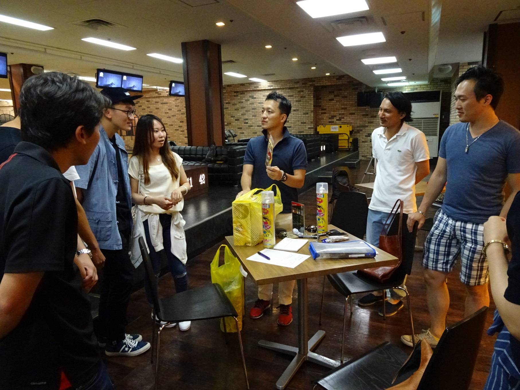 周末午後,人數到齊後首先抽籤分組,青年部負責人橋爪敦哉說明當天遊戲規則。全體分成三組,比賽兩場,由積分決定勝負,優勝小組可獲得精美獎品,而總分最低小組將受罰,臉上被塗鴉。不少人都是第一次參加活動,幾局下來,彼此漸漸熟悉,有說有笑,球也越投越好。
