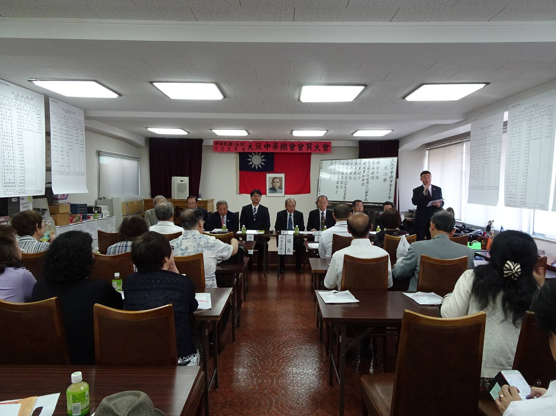 第九任會長洪勝信首先感謝大家撥冗參加,接著表示大阪中華總會創會至今已有70年歷史,感謝僑界先賢辛苦打下根基,今總會得以舉辦各種活動,持續為僑民服務。他強調,大阪中華總會支持政府的立場始終如一,不因政黨交替而有所改變,今後將繼續與當地主流社會、日華親善團體等維持良好關係,致力國民外交,盼會員給予支持協助,共同攜手為台日關係、為促進僑民福祉盡力。會務報告中,洪勝信說明中正大樓已依照章程並經辦事處承認後售出。