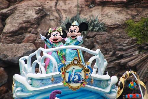 東京迪士尼海洋七夕迎賓遊行,有身穿七夕服裝的米奇和米妮現身