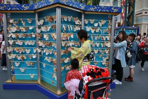 東京迪士尼樂園則有大型七夕裝飾,吸引遊客拍照