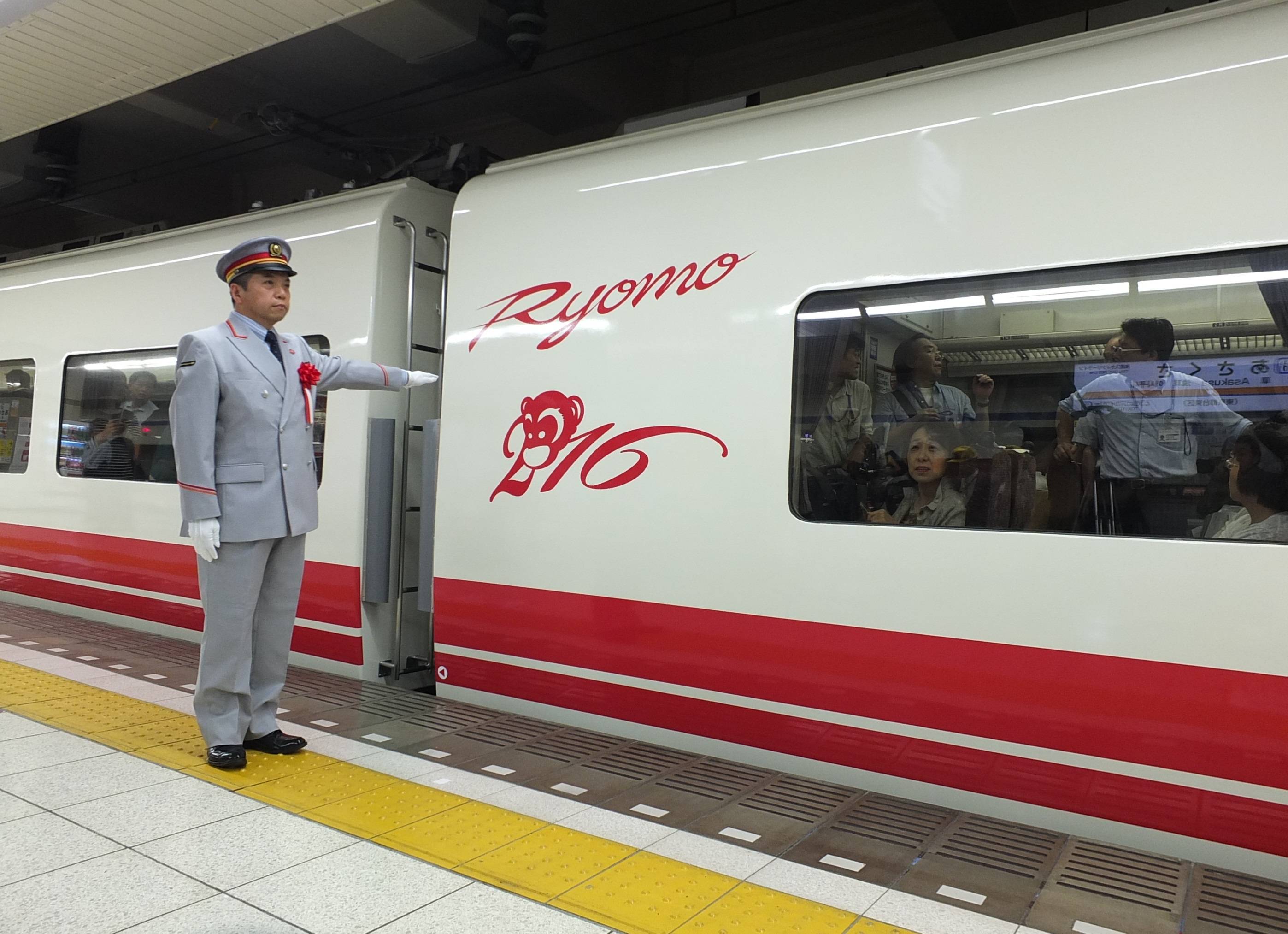 なお、同デザイン車両の出発の際には、下総駅長が「猿(今年の干支)」マーク前で合図した。