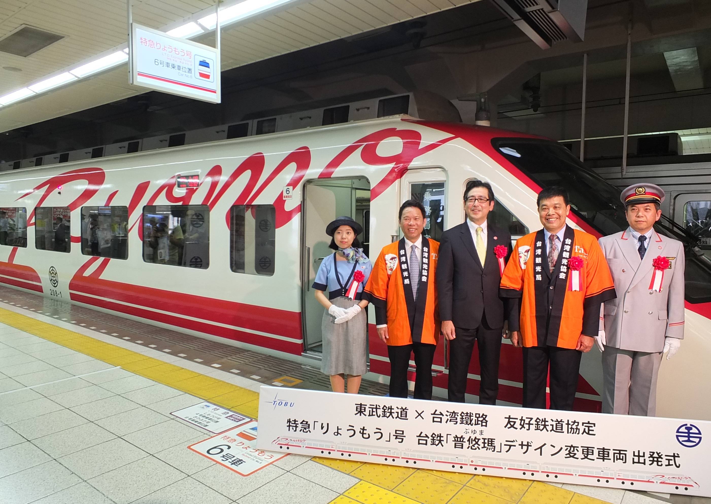 また、17日には東武スカイツリーライン浅草駅3・4番ホームにて同デザイン車両の出発式が行われた。同式には、東武鉄道取締役兼鉄道事業本部長の都筑豊氏、東武鉄道浅草駅長の下総功治氏のほか、台湾サイドとしては、台鉄総工程司の徐仁財氏、台湾観光協会東京事務所長の江明清氏が出席し、テープカットやフォトセッションを行った。