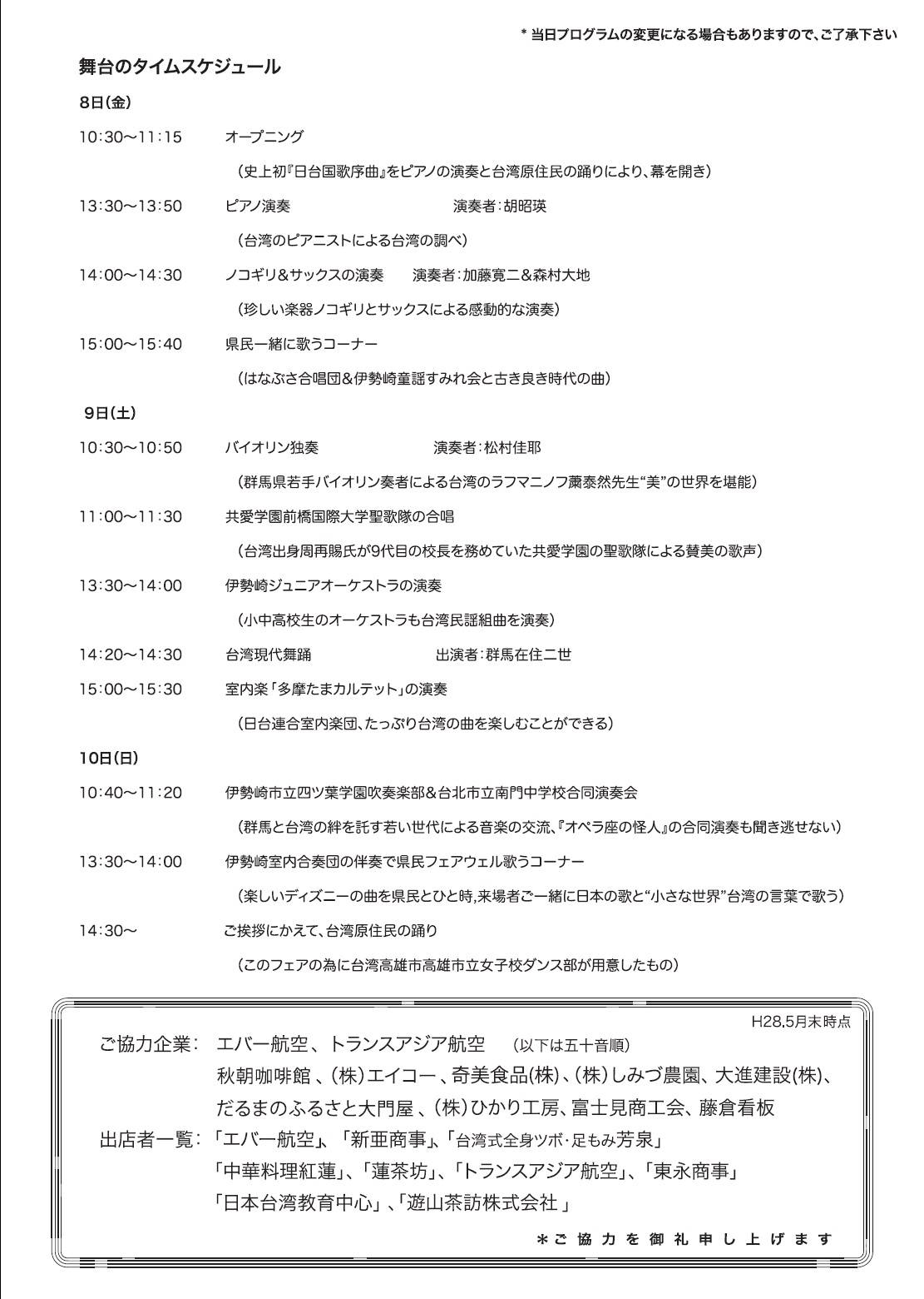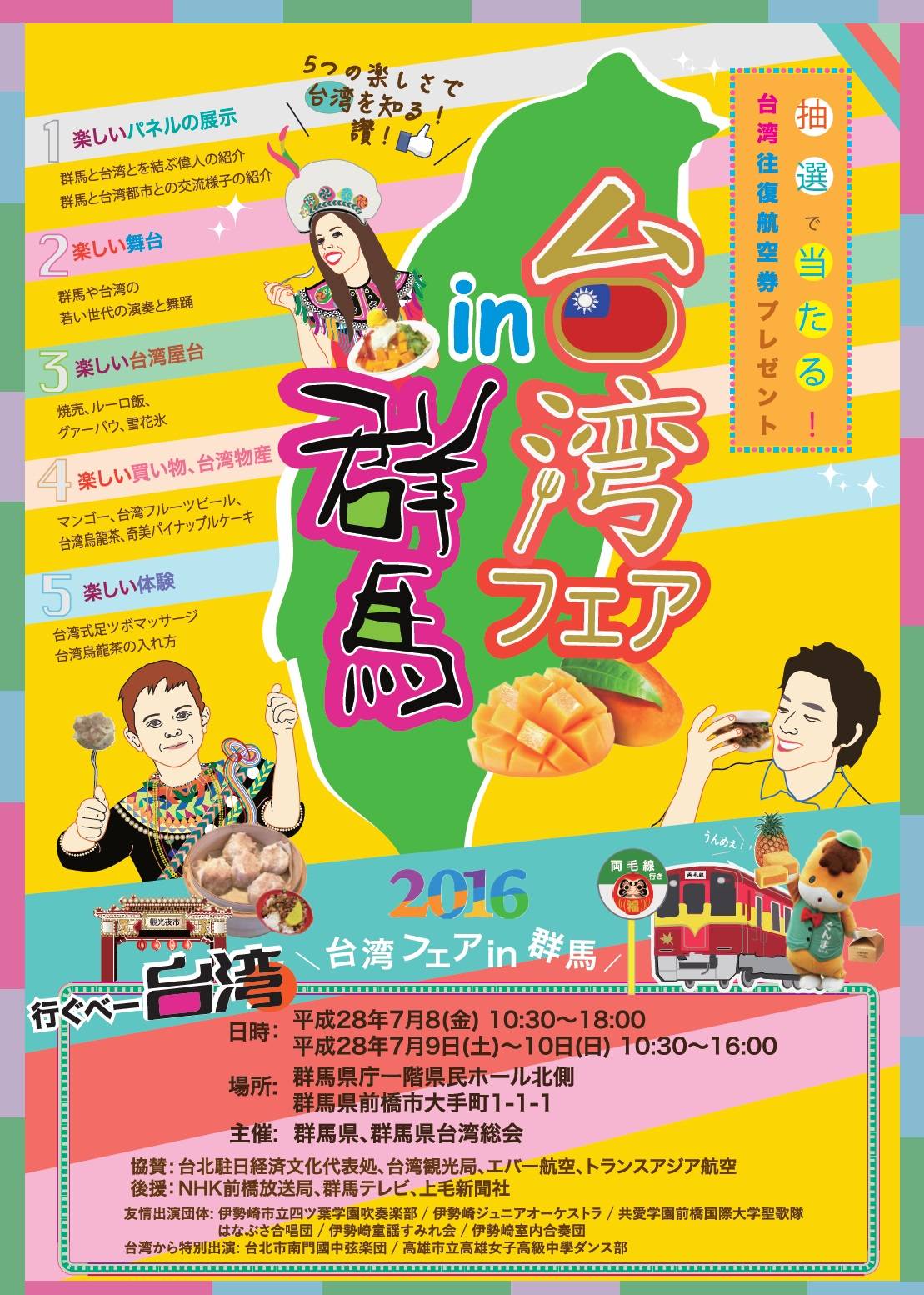 群馬縣台灣總會首度與當地政府一起合辦首屆「台灣市集in群馬」的活動,於7月8日至10日一連3天在群馬縣廳一樓縣民大廳北側舉行,屆時將可在現場品嘗到台灣道地料理、體驗台灣式腳底按摩和學習台灣烏龍茶的泡法,此外,主辦單位也特別邀請台北市南門國中弦樂團和高雄市立高雄女子高級中學舞蹈部到場表演,和當地伊勢崎市立四葉學園吹奏樂部、伊勢崎青少年管弦樂團、共愛學園前橋國際大學聖歌隊等團體輪番上台演出,炒熱現場氣氛。(2016/06/28 19:10)