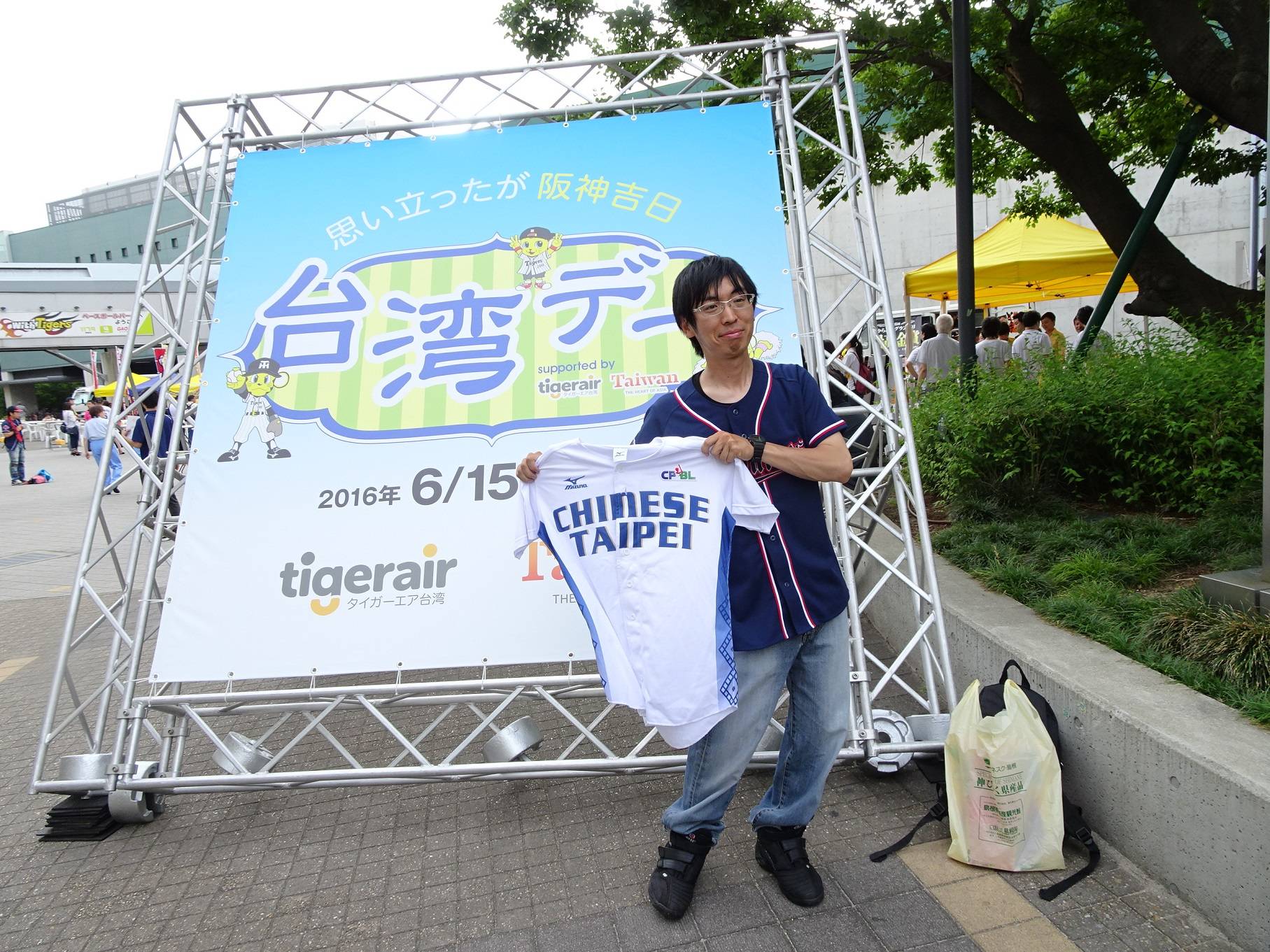 台灣觀光協會與虎航在阪神甲子園球場MIZUNO廣場設置攤位贈送紀念品,吸引許多喜愛台灣的日本民眾及搭乘虎航前往甲子園球場觀賽的台灣球迷到場。台灣觀光協會吉祥物『台灣喔熊』一現身,紛紛被阪神虎迷要求合影,『好可愛啊』的讚嘆聲不絕,日本球迷森岡晃弘攜帶《中華台北》球衣前來,提到幾年前因為阪神虎隊林威助的活躍得知台灣有不少優秀的選手,今年3月曾前往大阪巨蛋觀看中華職棒聯軍與日本武士隊比賽,今天得知台灣日特地前來。