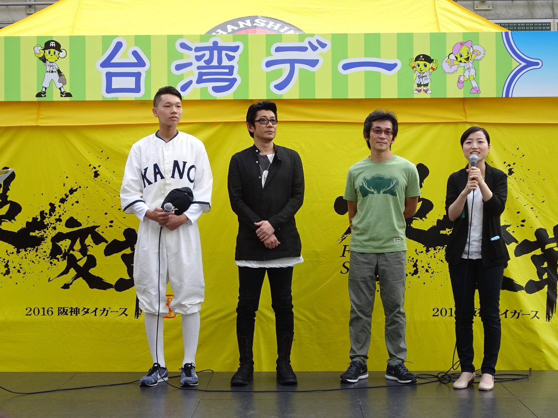 導演魏德聖表示每次來到甲子園觀眾席永遠都是滿的,這對球員來說是最大的鼓勵,不管球員、球隊如何努力都沒有球迷來得叫人感動,他希望台灣也能有更多熱情、瘋狂的球迷;另外,《KANO》完成、放映至今已經第三年了,還能受邀來到甲子園真的非常感動,感謝台灣觀光協會及虎航的協助,棒球是台灣與日本共同的文化,希望不止地震,球類也能成為台日之間感情的維繫。