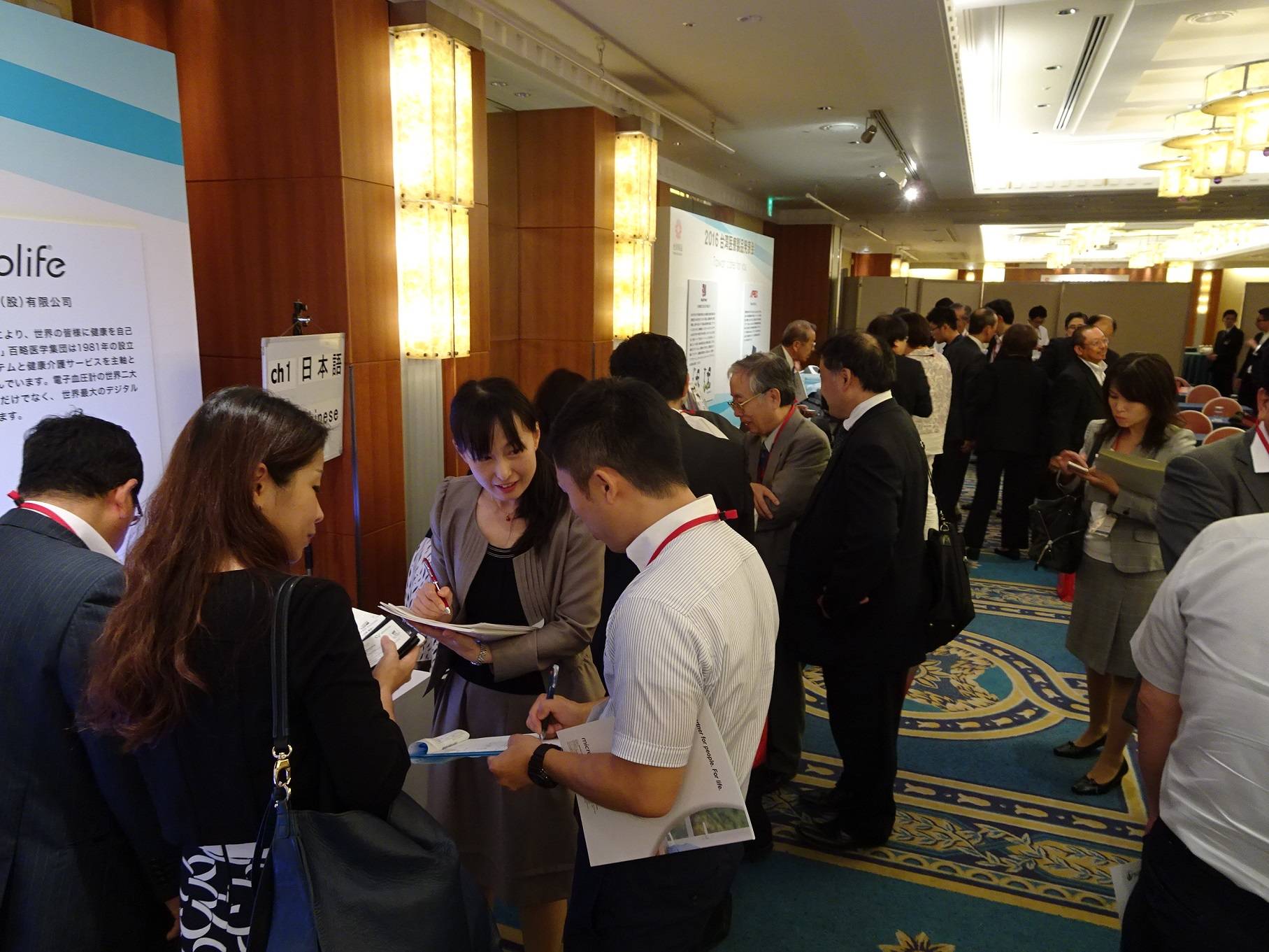 台灣貿易中心大阪事務所所長李泓章說明台灣貿易中心主要業務內容後,介紹參展五位廠商代表,隨後各家代表以影片詳細說明產品特色,發表會結束後,各家展示區湧入人潮,場面相當熱烈。日本廠商表示,短期開發商品的超強行動力,是台灣廠商的強項,展出的醫療產品與日本的相關產品相較之下,不論設計上或機能性都非常新穎、優異,相信能有好的銷售成績。