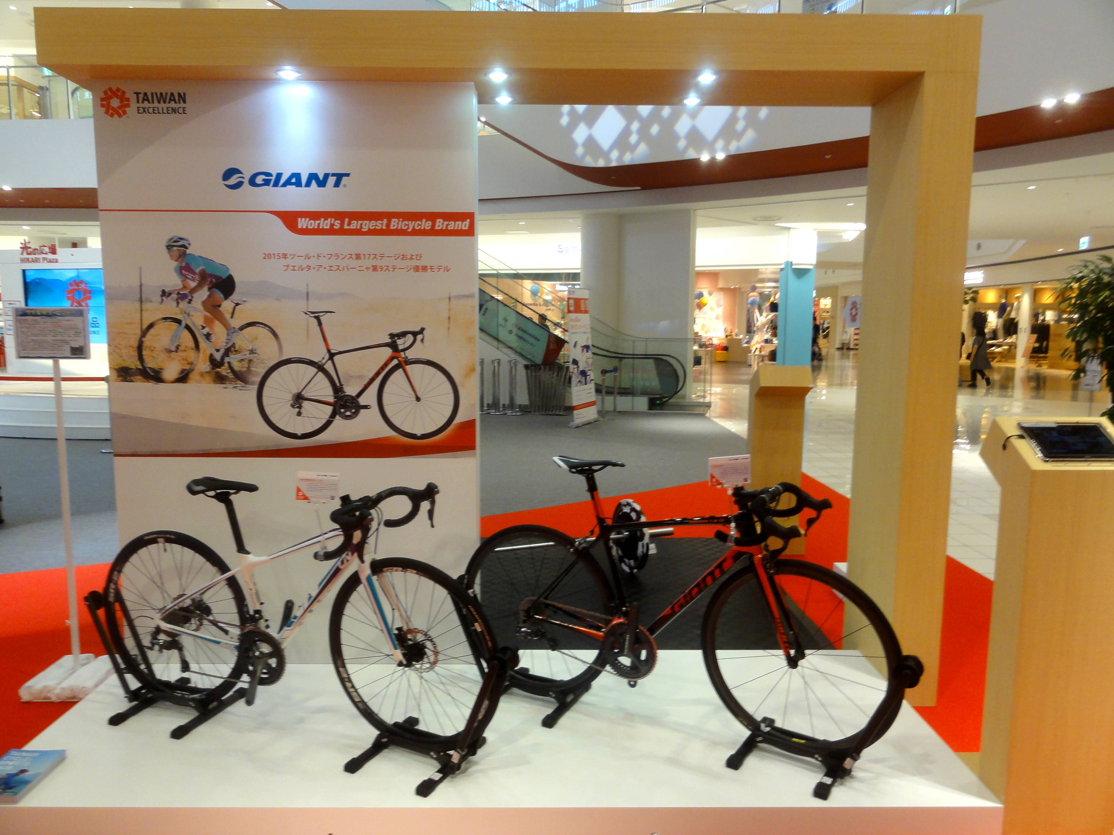 今回のイベントは自転車にフォーカスし、世界的に有名な「GIANT」(巨大機械工業)のロードバイクやMing Cycle(永祺車業)の折り畳み式ベルトドライブ自転車「STRiDA」、その他、自転車用パーツやサイクルキャリア、サイクルウェア等関連製品が多数展示されていた。