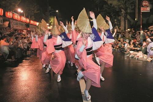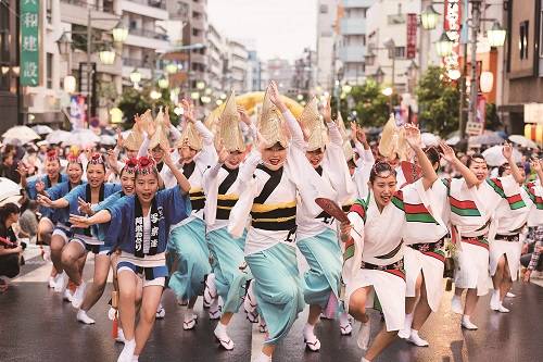 早期高圓寺地區為了活化當地發展而開始舉辦東京高圓寺阿波舞大會,至今已有60年的歷史,每年有約160個連,約1萬名舞者參加,現場吸引近百萬民眾到場,成為東京夏日風情畫之一,同時也是東日本最大規模的阿波舞大會。
