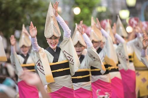 因為「舞也阿呆,看也阿呆,同為阿呆,不如一同跳舞」的叫聲,讓源自德島的阿波舞聞名全日本,這個被列為日本三大盆踊之一的阿波舞擁有近400年的歷史,原本是德島的盂蘭盆舞,是為了迎接祖先的靈魂而跳的舞。阿波舞的隨意性強,沒有固定模式,跳舞的男女會分組成方陣,只要跟著大鼓或是三味線等樂器演奏的樂曲節拍,踏著2拍的節奏,右手和右腳、左手和左腳一起交互向前,沿街踏舞即可,正因為動作不難,所以一旁觀賞表演的民眾可以很快地就抓到要領,隨之起舞、同歡。
