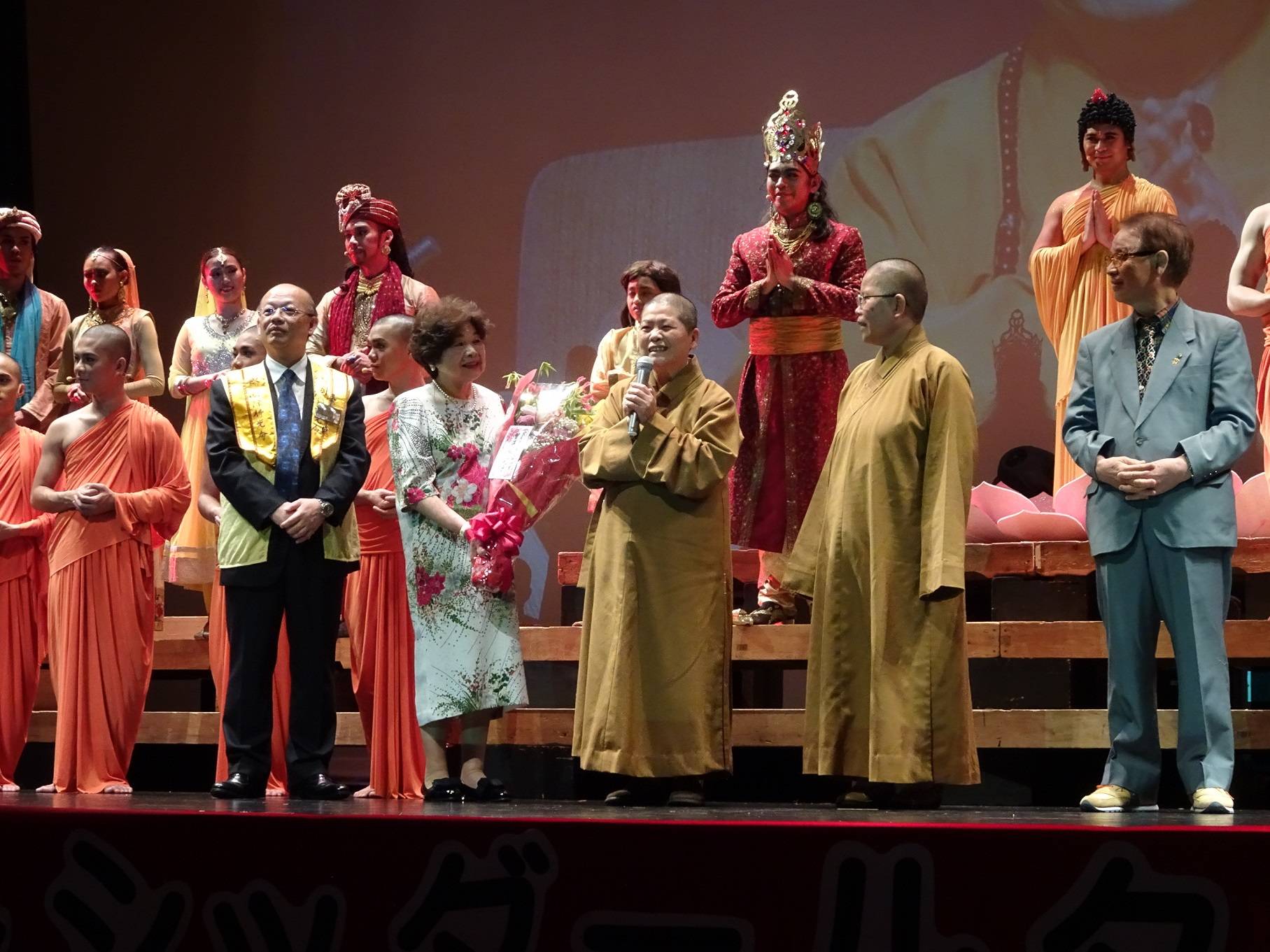大阪公演是「悉達多太子」音樂劇演出十年來第88場公演。很多人好奇為天主教國家菲律賓的學生們會來演出佛陀的故事?國際佛光會大阪協會會長潘振興表示,佛光山本著『以文化弘揚佛法、以教育培養人才、以慈善福利社會、以共修淨化人心』,四大宗旨推廣人間佛教,星雲大師說過「教育不是只有書本、可以利用其他音樂、體育等任何東西」,菲律賓學員們因為演出悉達多太子音樂劇翻轉命運,走上自己的新舞台,相信今後將會擁有更多發展的空間與方向,他感謝大家的來臨,感謝永光院長及全體學員前來成就這場演出,讓大家更了解佛光山及NPO法人國際BLIA所從事的慈善工作。