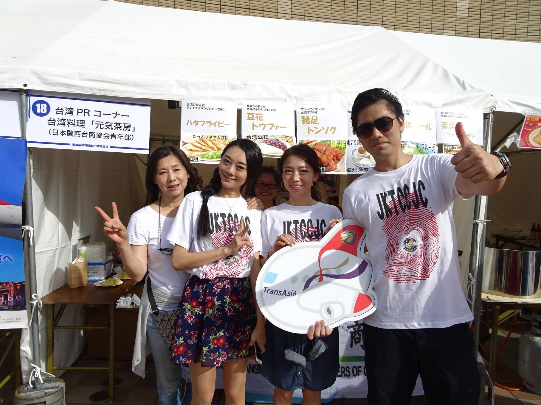 關西台商會青商部在元氣茶房協助下,賣起最具代表性的茶葉蛋、魚丸湯、豬腳、豆花等台灣美食;台灣小吃168也卯足勁準備台灣美食代名詞小籠包、還有水餃、蘿蔔糕前來競賣。內行的日本民眾更是懂得吃台灣美食,得搭配台灣啤酒或是蘋果西打。代表台灣的兩個攤位,生意源源不絕,入夜後更是大排長龍。去過台灣的民眾說,和台灣的味道完全一樣,非常好吃。沒到過台灣的民眾則表示,有機會一定要去台灣大吃一頓。