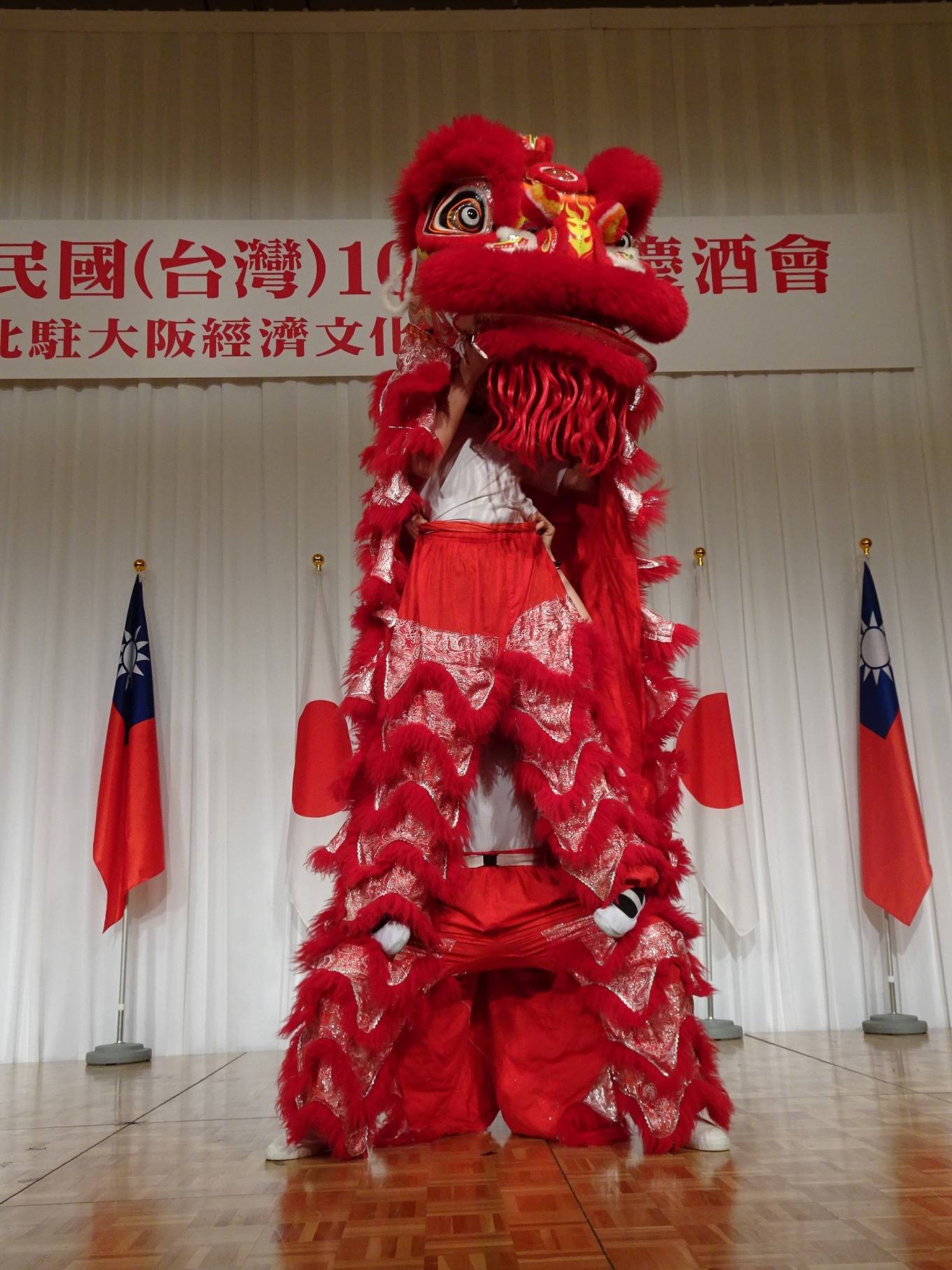 大阪府議會議長今井豐帶領全場乾杯,祝賀中華民國國運昌隆、台日友誼永固。隨後,大阪中華學校舞獅隊熱鬧登場,舞蹈社同學以優美的舞姿為晚會增光,留學生李芃、徐綾遙以二胡雙重奏帶來夜來香等耳熟能詳曲子,旅日歌手寒雲演唱『中華民國頌』等歌曲為國家祝賀,最後在大阪中華總會會長洪勝信致閉幕詞後,晚會劃下完美句點。