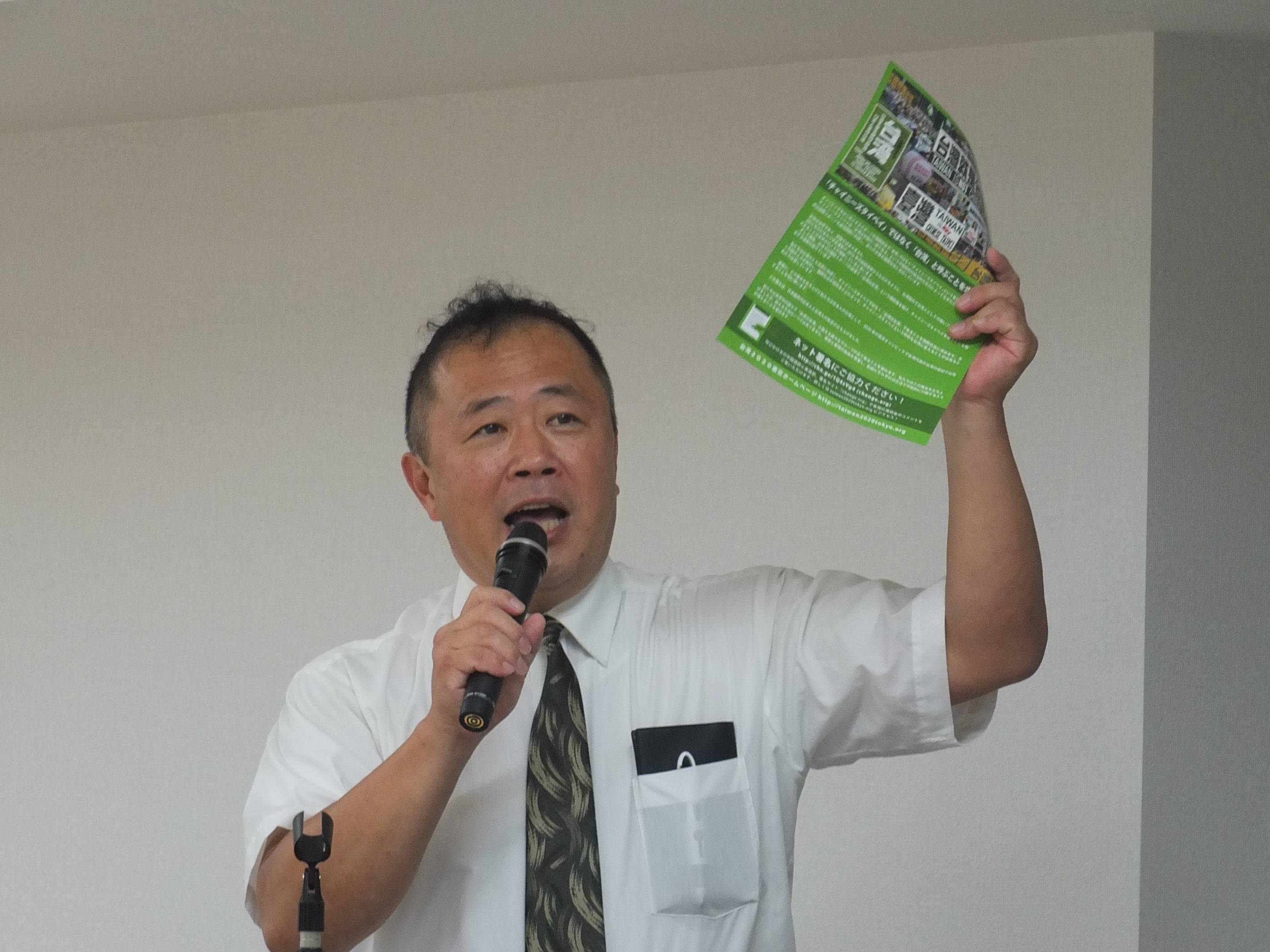同集会を主催した台湾研究フォーラムの永山英樹会長は、現在世界中で一般的に「チャイニーズタイペイ」という名前が使用されている事を問題提起し、その上で、「台湾は中国ではなくチャイニーズタイペイでもない。台湾は台湾だ」と強調し、今後も台湾の為に尽力していく事を伝えた。