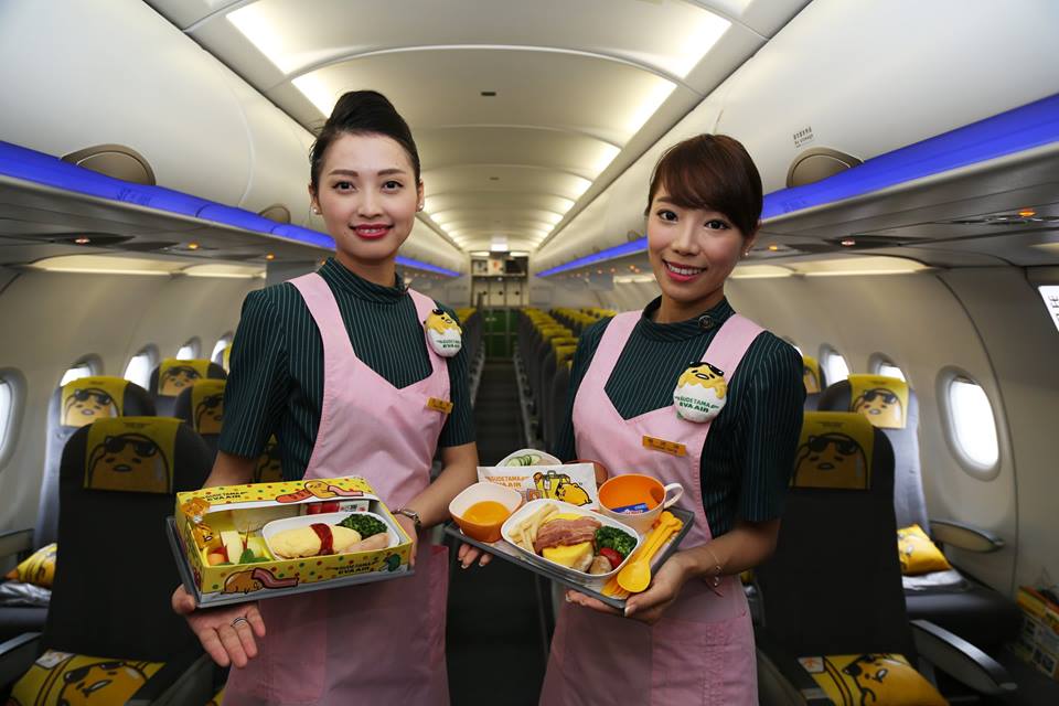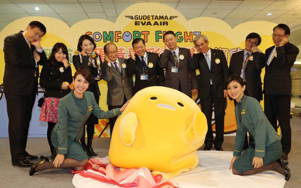 エバー航空は11月24日、台湾桃園発成田着便に「ぐでたまジェット」の投入を開始した。新しい塗装機となった「ぐでたまジェット」は、機体だけでなくヘッドレストカバー、クッション、紙コップ、紙ナプキン、安全のしおりなど30種類以上の機内アイテムもサンリオの人気キャラクター「ぐでたま」一色となっている。