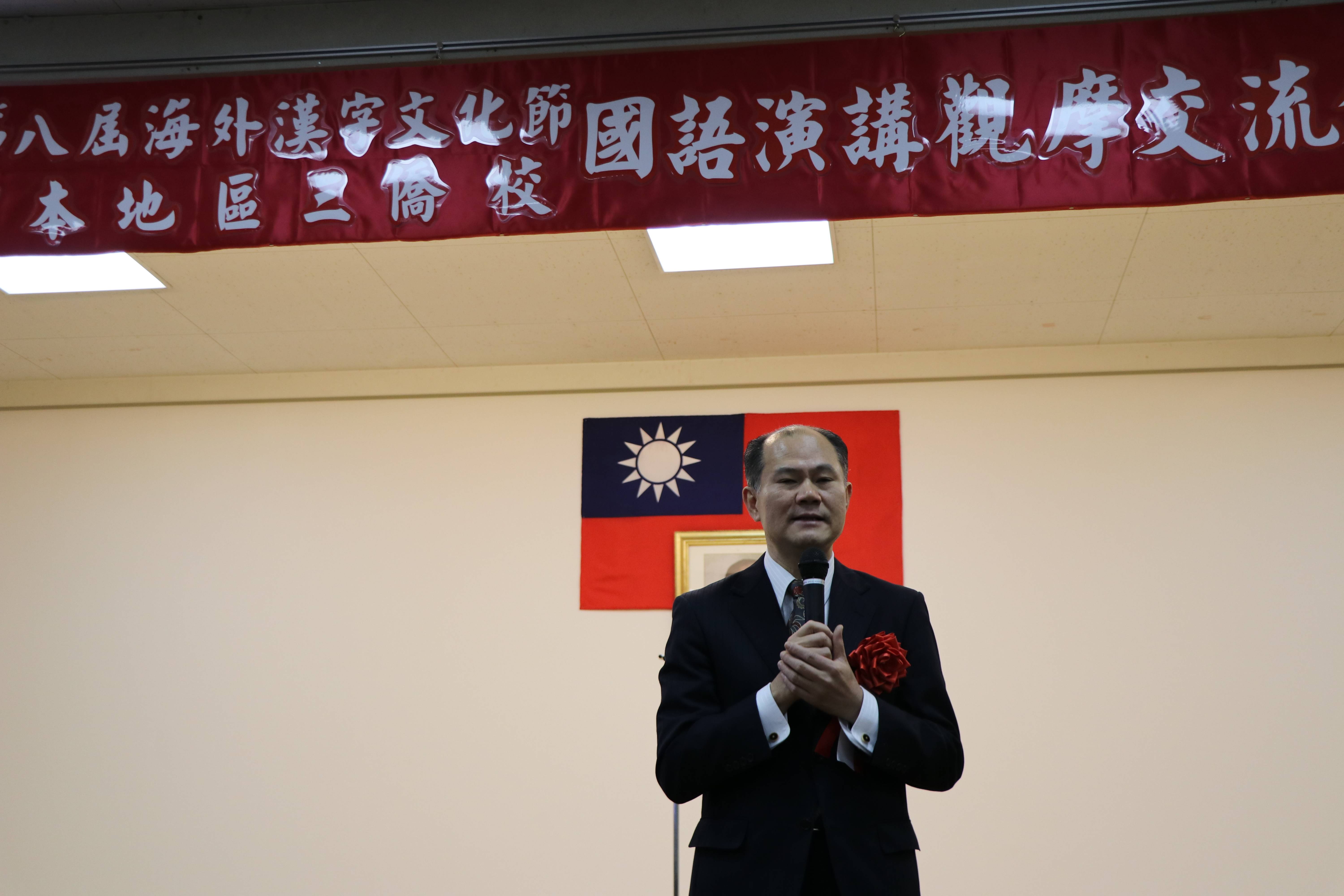 橫濱中華學院校長馮彥國在致詞時表示,國語演講交流會第8屆比賽有著深遠的意義,東京、橫濱和大阪三所中華學校,都在不斷推動華語文教育。他也希望藉由當日參賽學生的演講,讓在校同學都能透過語文、聲音和肢體了解漢字之美。
