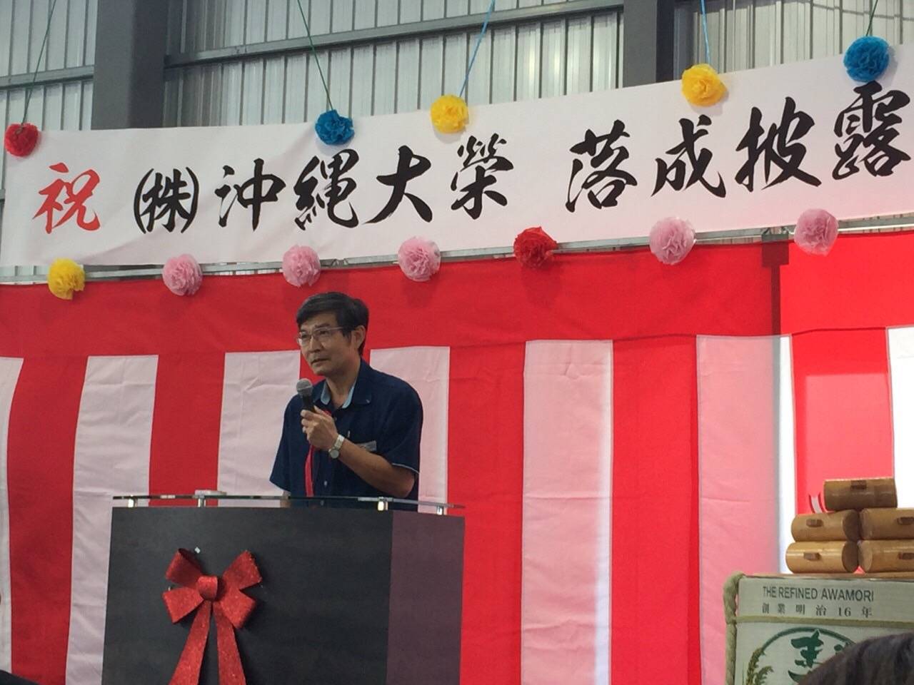 沖繩大榮此次的落成啟用儀式,是為了配合擴增小客車出租業、汽車維修廠房兼辦公大樓落成而舉辦。沖繩大榮社長郭湘嵐在致詞中除了感謝與會人士的支持外,他也希望小客車出租可以提供更完善服務給客戶。謝世謙也表示,華航長久以來經營台灣與沖繩間的航線,目前使用747機型為客戶服務。