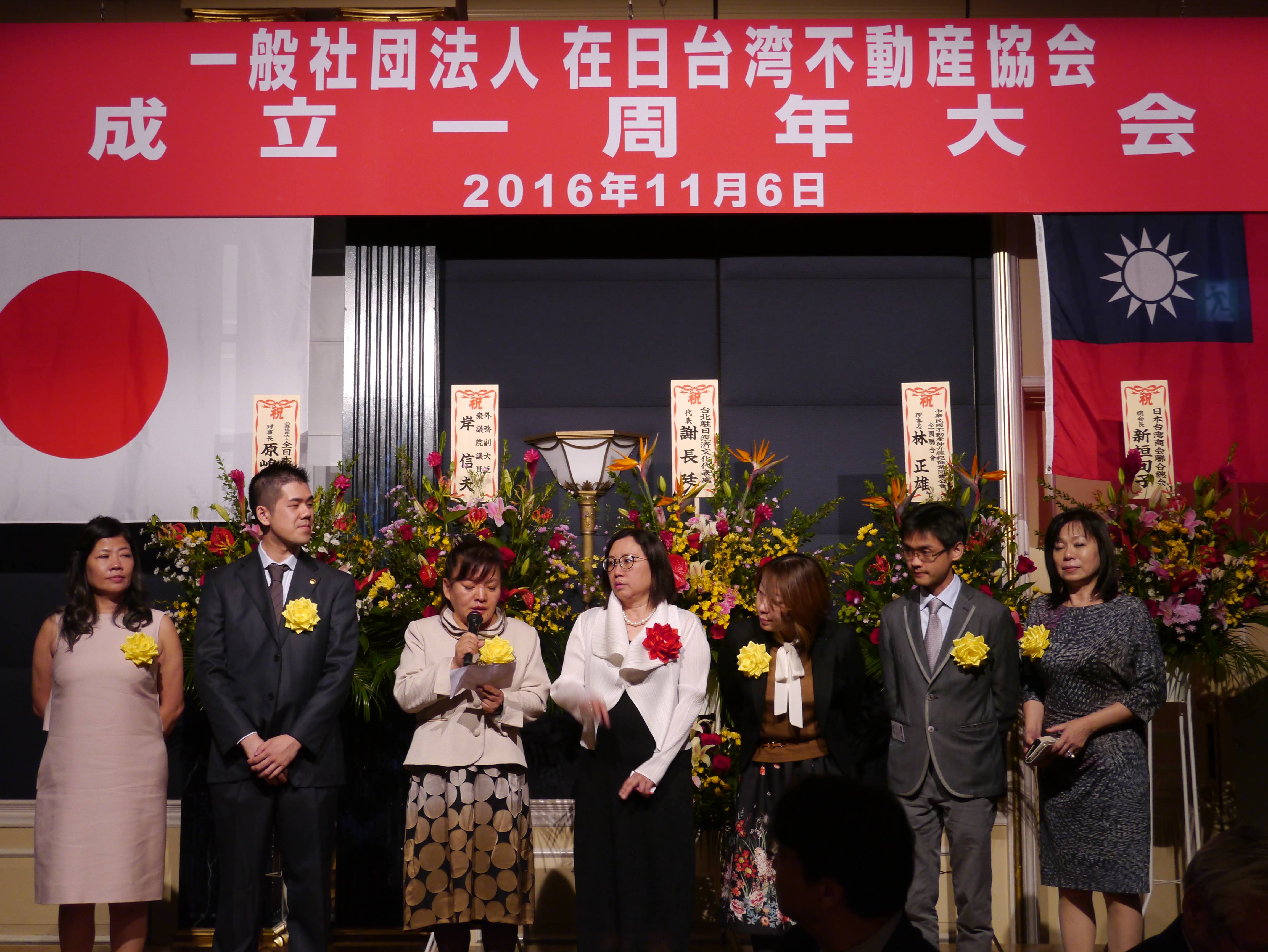 原嶋和利則在致詞時表示,他希望台日雙方沒有隔閡,不分彼此雙方,作為夥伴一同為不動產業界而努力。當日共有20多位來自新北市和桃園的台灣不動產業者,在全聯會會長林正雄帶領下到東京參加大會。林正雄致詞時提到,在日台灣不動產協會的成立對台日雙方不動產業界是一個非常大的成就,對於將到日本投資的台灣民眾來說,是一個重要的平台。