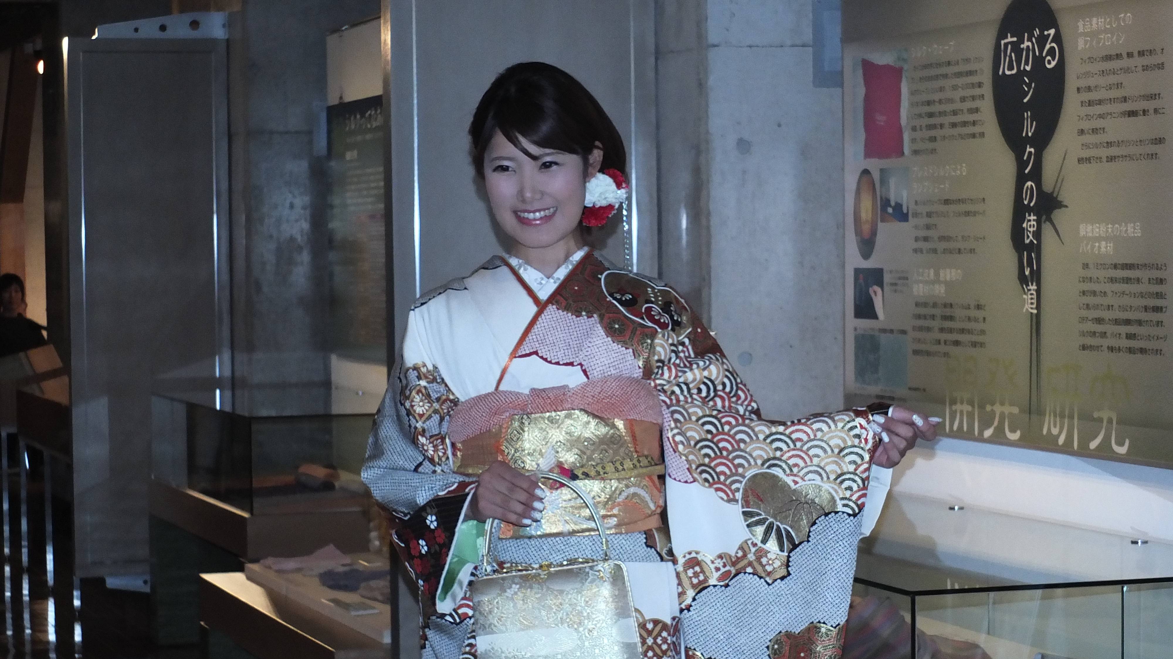 位在長野縣駒根市的駒根絲綢博物館,在11月3日舉行了一場別開生面的和服服裝秀,邀請當地人士和線上的模特兒穿上各式各樣的和服在博物館內走秀,以活潑的方式展現和服之美。當天也邀請東京農業大學的教授長島孝行,以「邁向東京奧運 絲的可能性」為題,與大家介紹絲的用途。