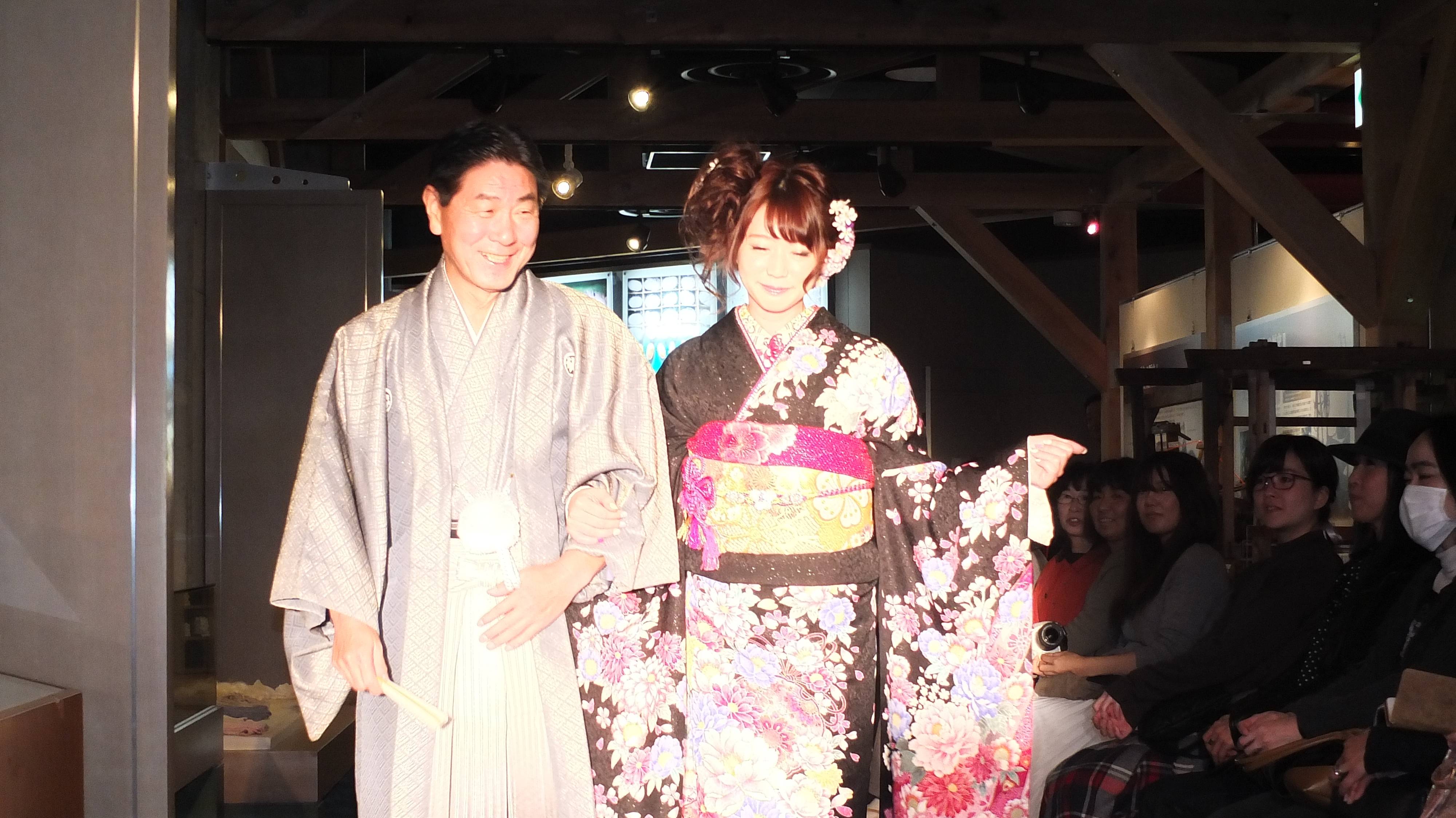 駒根絲綢博物館是首次舉辦和服服裝秀,現場吸引了100位觀眾參加,也有觀眾身穿和服來共襄盛舉。除了專業模特兒之外,也邀請了當地人士,一共11位模特兒來展示不同款式的和服。曾獲得第63屆藝術祭全國大會新娘著優勝的樋屋朝己,現場示範也如何為新娘著裝。她表示,希望能將日本的傳統服飾和服介紹給全世界,因此這次可以在自己的家鄉舉辦和服秀,她感到相當高興。