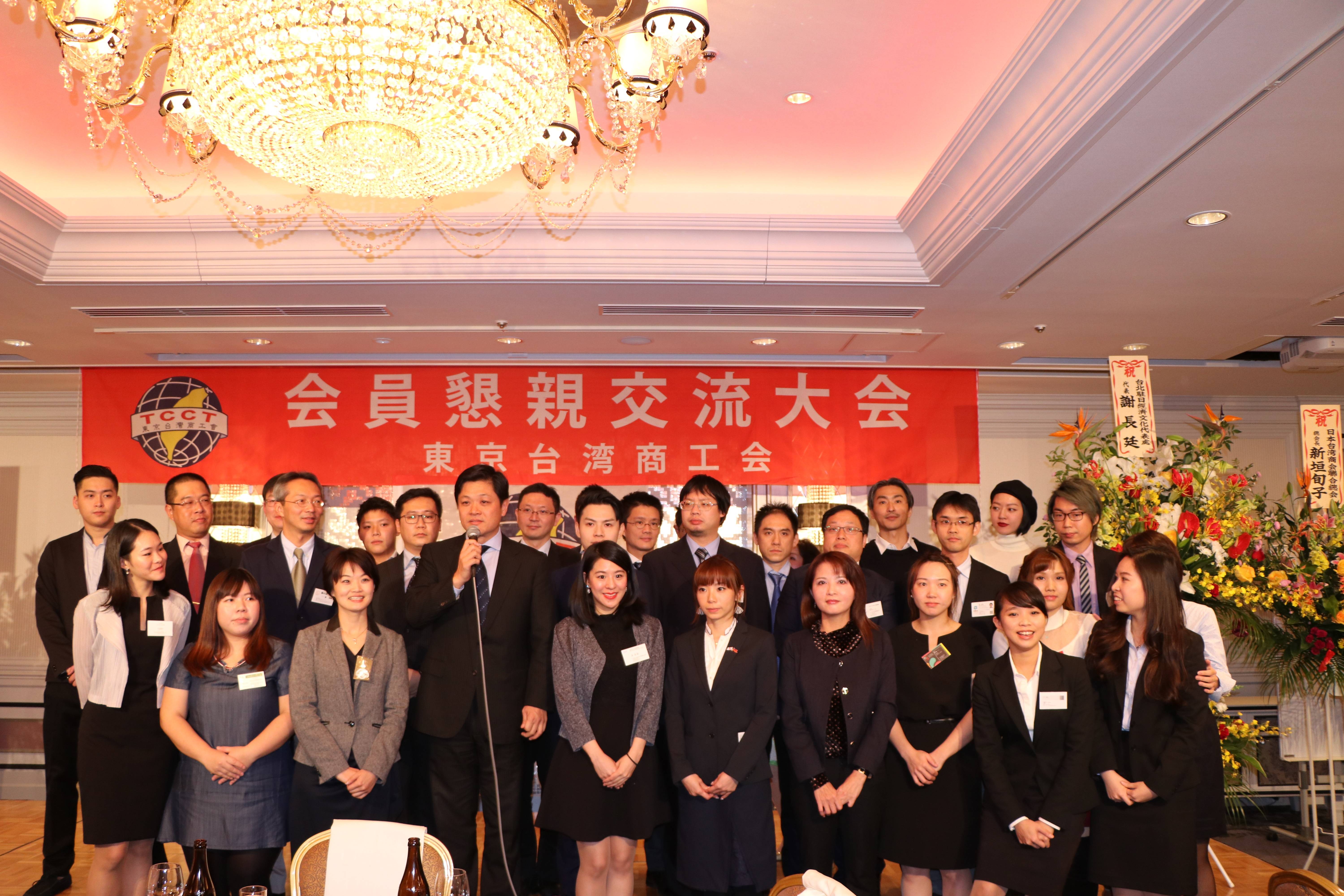 懇親會中,台北駐日經濟文化代表處副代表張仁久、板橋區議員長瀨達也和日本台商總會長新垣旬子以及多位僑領和僑界人士接受邀出席。張仁久表示,目前台日關係友好,相處融洽。代表處方面最大的任務,是希望僑界和台商會,能和日本的區域有所連結,台日雙方關係更為發展。新垣旬子則提到,台商會一直都是一起打拼的夥伴,大家要多溝通多互相認識,才有辦法把團體的力量轉成各自的力量,各自的力量成為團體的力量。