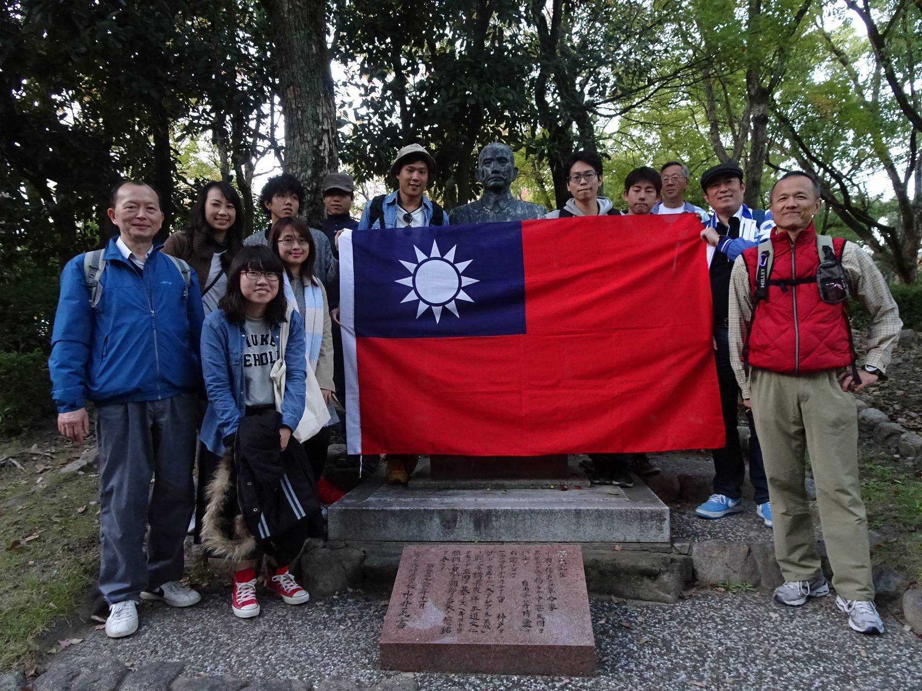 在大倉山公園國父銅像前合影