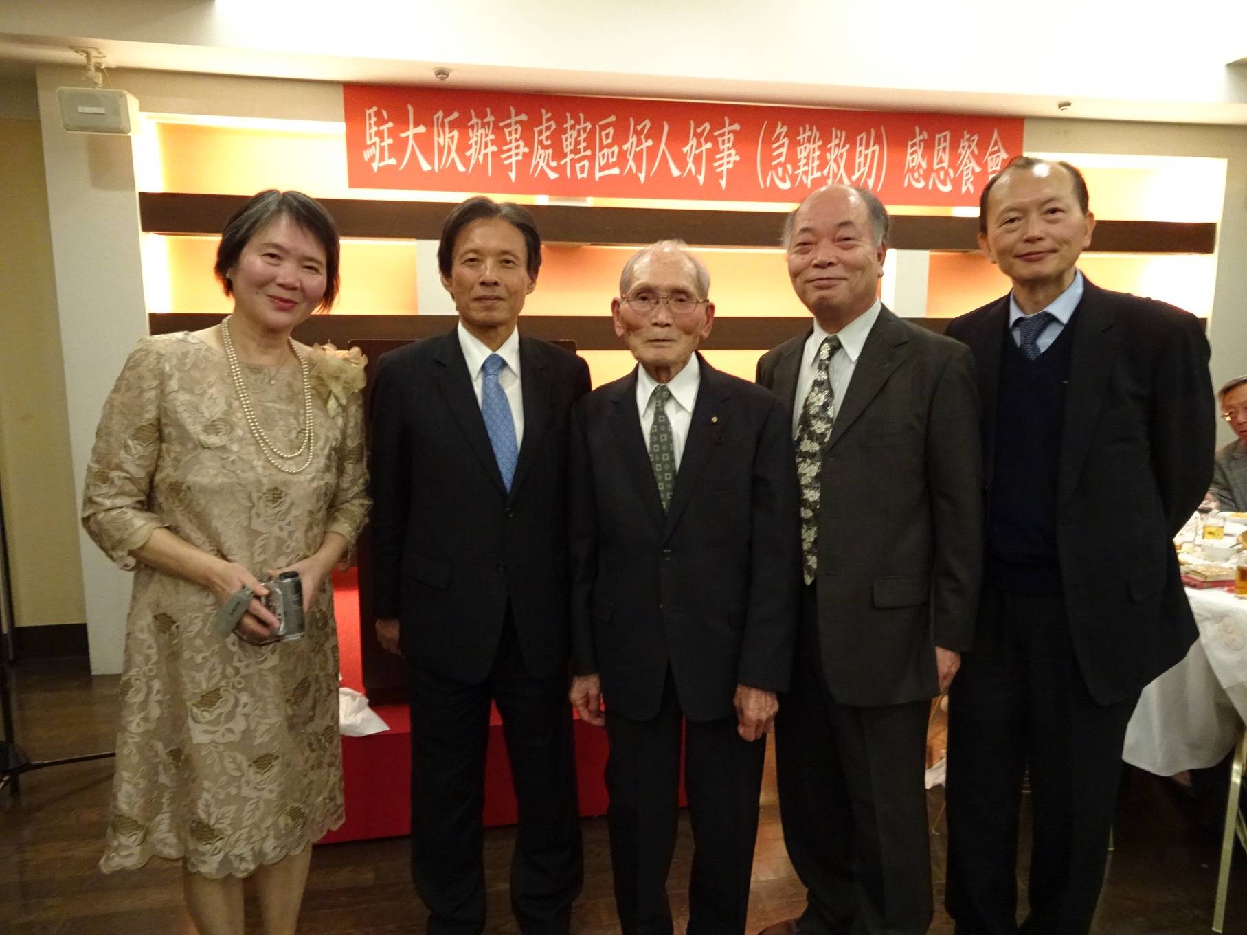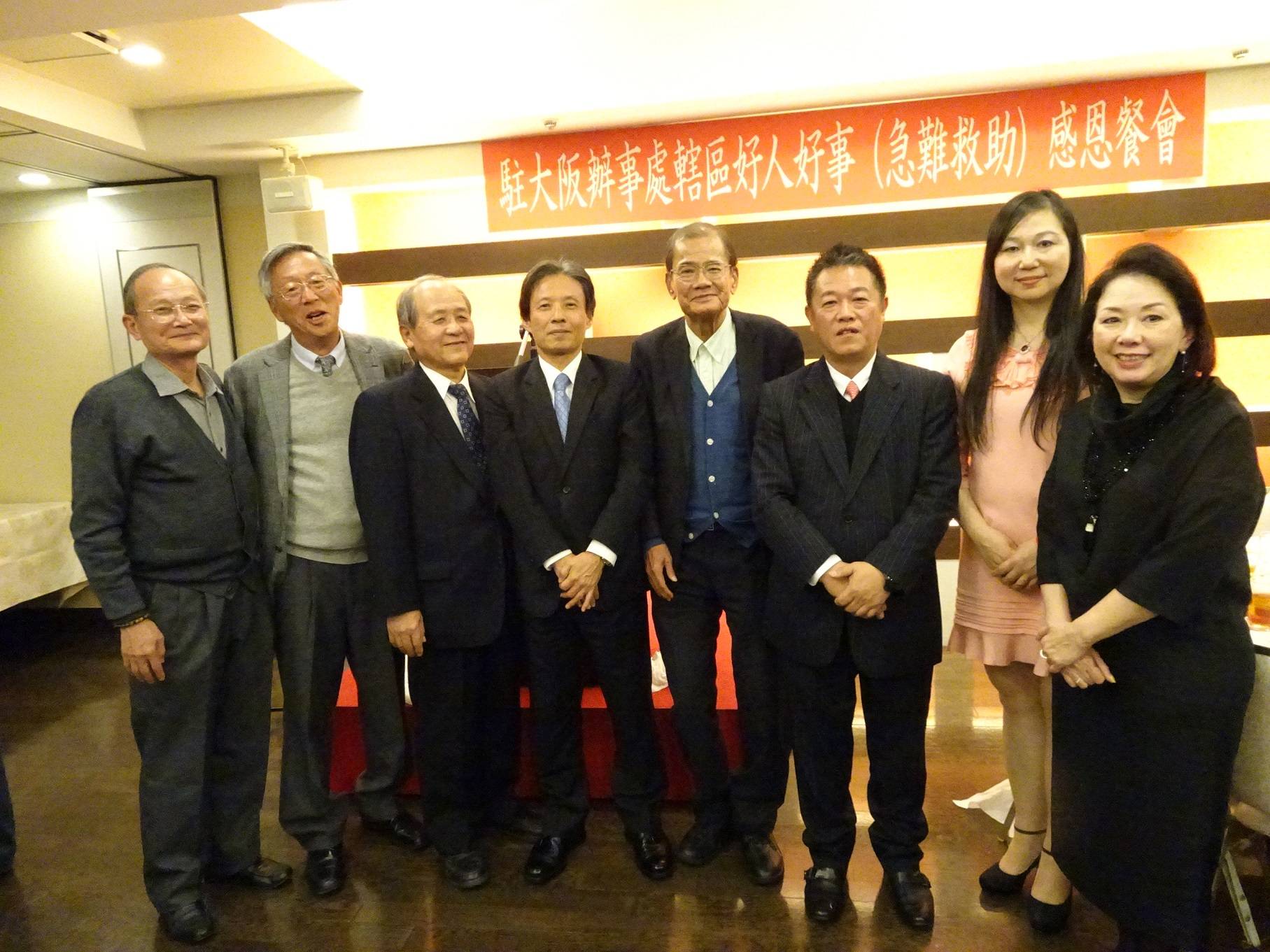 駐大阪辦事處於11月25日在中華料理「大東洋」舉辦好人好事感恩餐會,感謝一年來協助駐館處理旅日國人急難救助工作人士,轄區各地區僑團僑領、僑胞、日本友人共50人應邀出席,場面溫馨融洽。