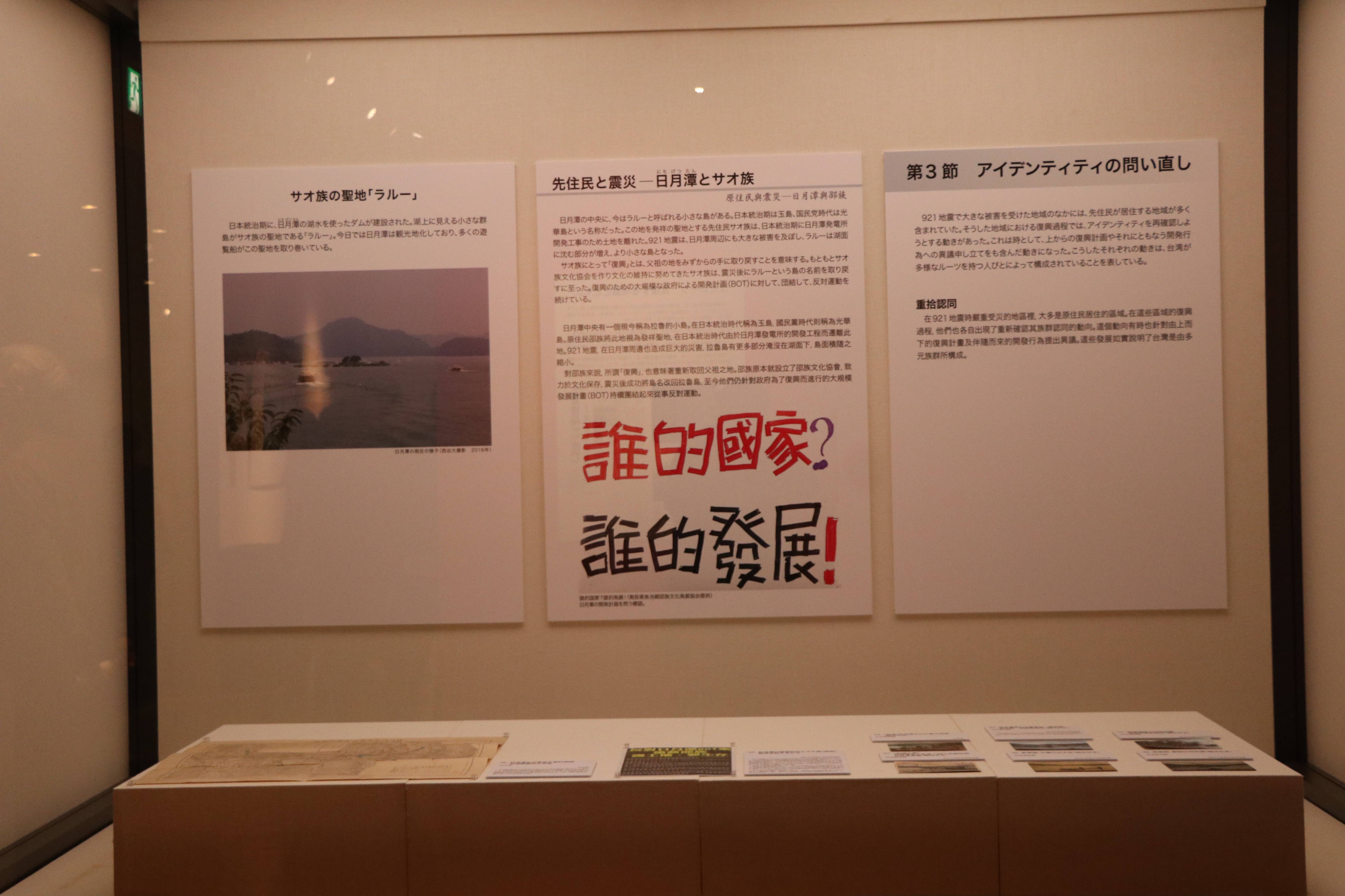 這次的展覽主要分為台日地層連動、日本殖民時代的震災和921地震復原三部分。殖民時代的震災呈現了1904、1906、1935和1941四次震災的救援、復原和報導,921復興則呈現出原住民和客家族群不同的文化和主張。
