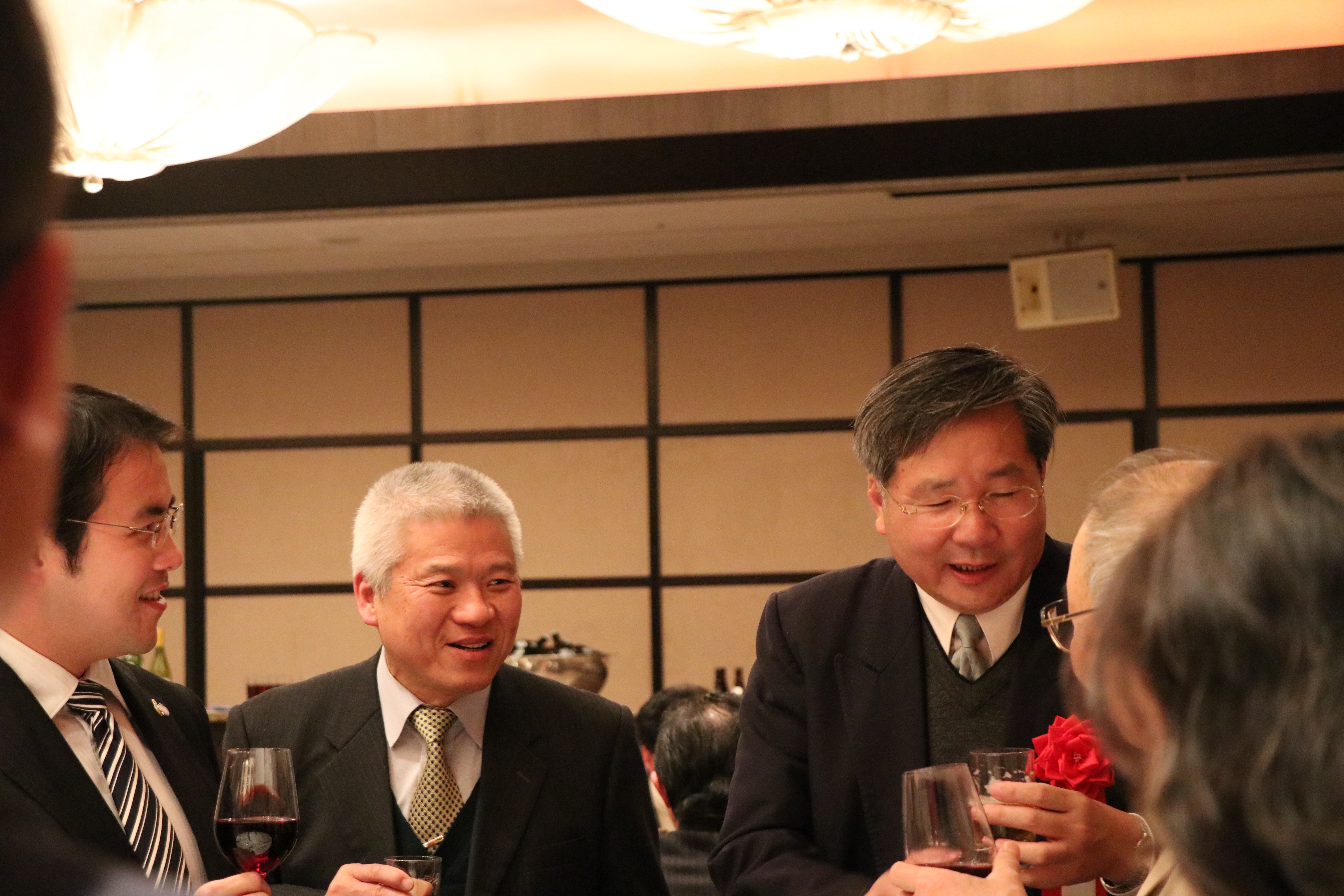 當日演講會後也舉行懇親會,共同在異鄉慶祝春節。駐日代表處副代表郭仲熙也受邀出席。他在致詞時表示,川普上任後台灣的國際環境可能面臨更大的考驗,希望結合在場來賓的智慧和力量協助國家發展。