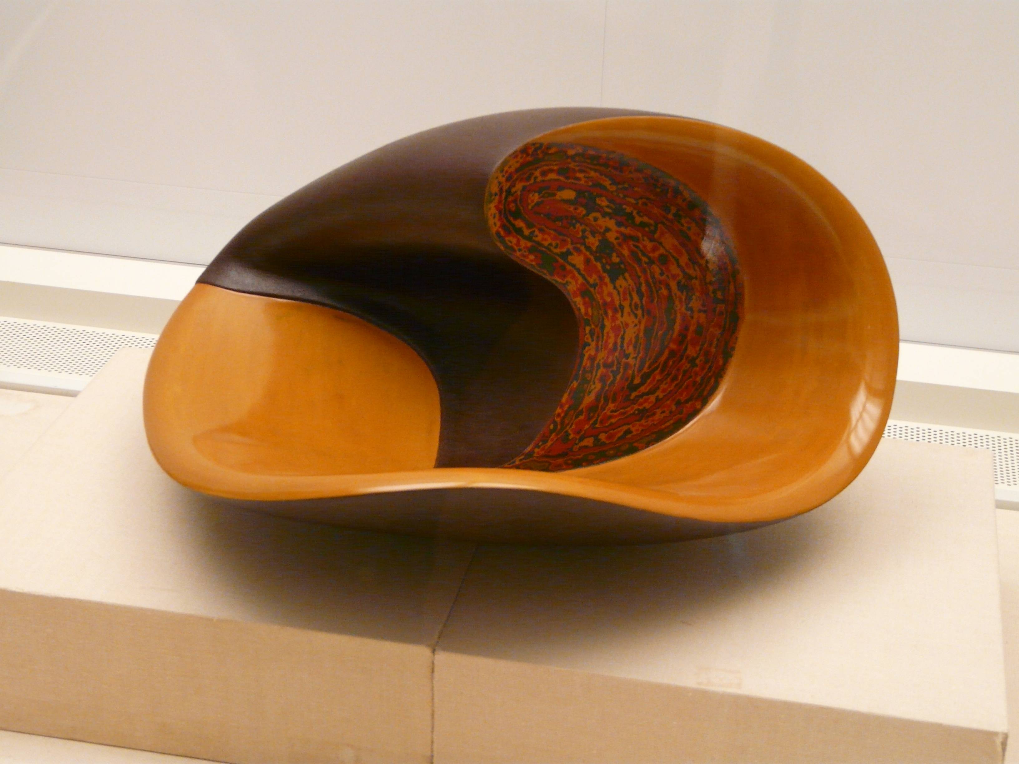 同作「波響」は、漆という技法が用いられており、彫刀で形の強さと美しさを表現し、色や波紋のデザインは随い紙やすりで研磨してから漆で仕上げたもの。約1年の製作期間で完成。彭氏は「私の故郷である台湾・新竹で幼い頃に川辺や海辺で育った事が作品にインスピレーションを与えた。海辺の波の心象風景を表現した作品となっている」と説明した。