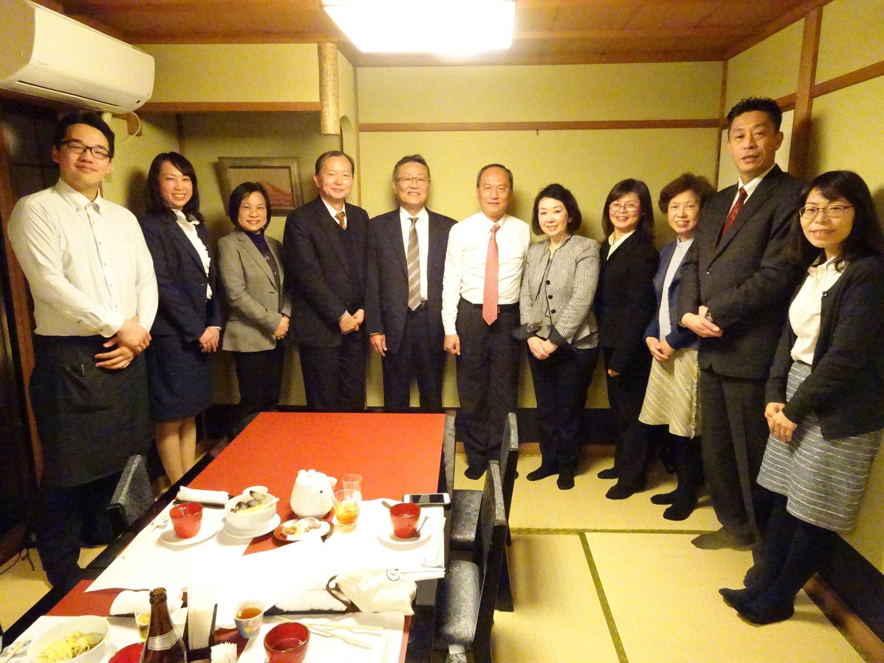 僑務委員會委員長吳新興5日結束神戶華僑總會拜會後,在駐大阪辦事處僑務組長黃水益陪同下,與日本台僑李登輝之友會、日本謝長廷之友會、台灣留日京都大學校友會、京都大學日台交流會及京都相思會等會員餐敘,瞭解旅居京都台僑生活情形,表達關懷之意,隨後前往京都華僑總會會館拜會,受到理監事一同熱烈歡迎,雙方就如何促進台日交流及僑務工作交換意見。