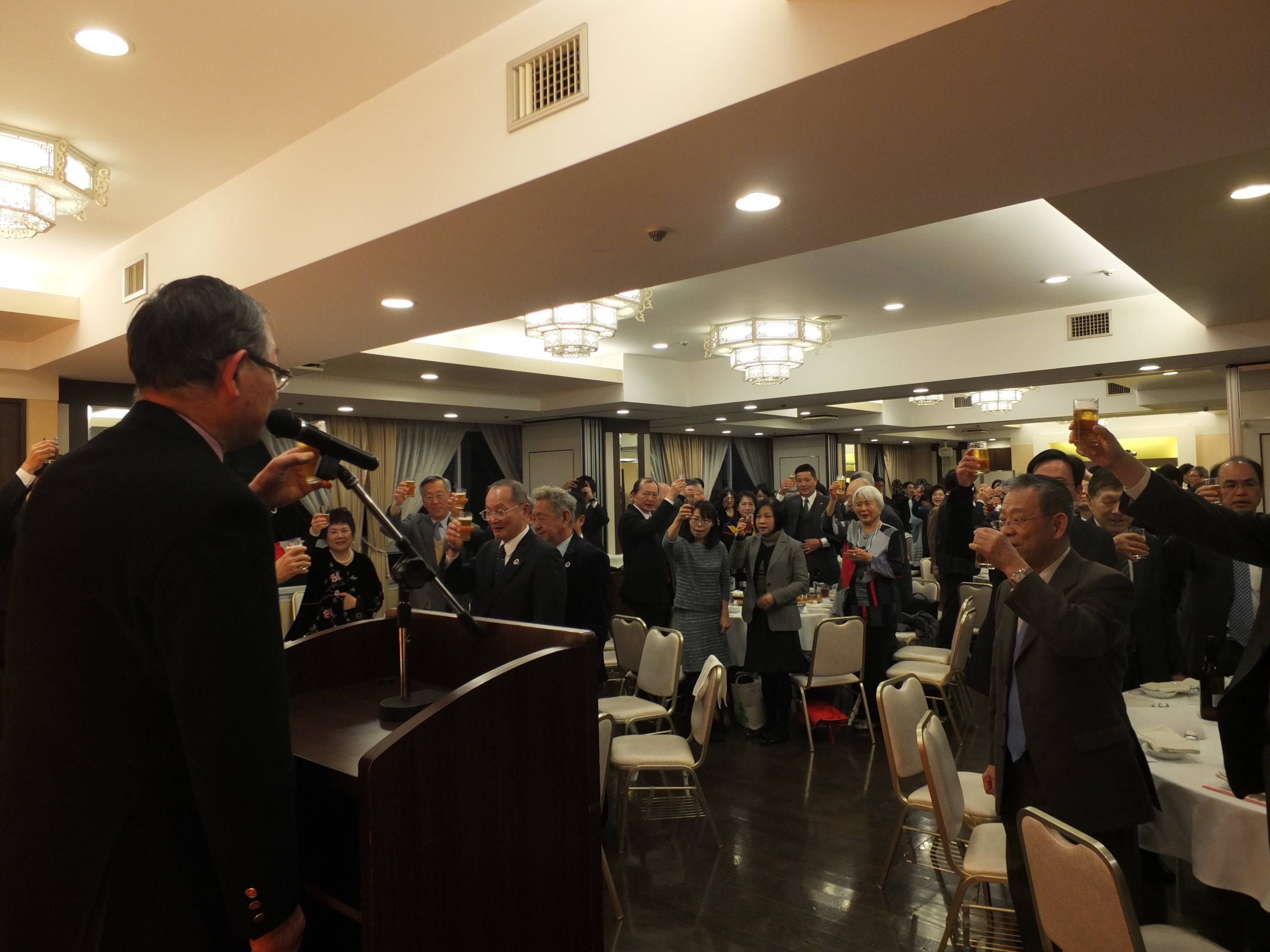 同会には、台北駐大阪経済文化代表処の陳訓養処長や台湾貿易センター大阪事務所の林志鴻所長、チャイナエアライン大阪支店の丘偉端支店長ほか、大阪地区の華僑団体会長らが出席したほか、台北駐日経済文化代表処(以下:代表処)の張仁久副代表、同じく代表処僑務部の王東生部長、日本中華連合総会の毛友次会長らも東京から駆けつけ、呉委員長を歓迎した。また、日本からは親台派の大阪市浪速区の玉置堅司区長も出席した。