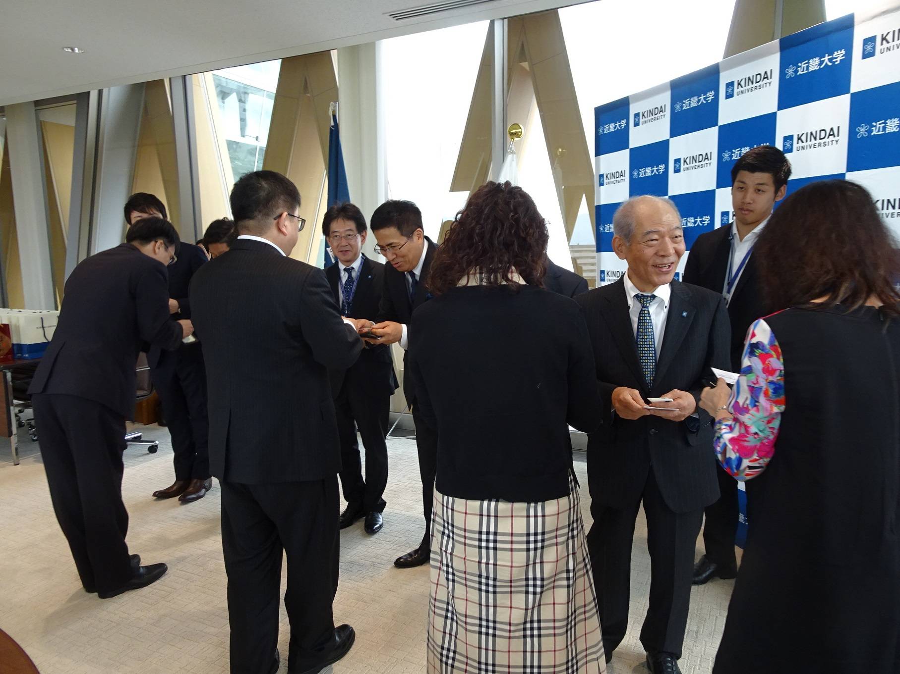 簽約儀式後,訪問團一行在校方安排下參觀近大校舍及以「實作教育」為教育方針所研發的各種產品。去年7月撮合台灣赴日攬才團拜會近大的近畿大學校友會國際交流會委員長李忠儒對簽署合作樂見其成。他表示近大的名望在日本、在世界皆逐漸高升,連續4年報考學生人數更是高居日本所有大學的第一,在台灣也有1200位校友,很高興能為中華民國台灣企業有所貢獻,也為母校畢業生提供海外就業機會。
