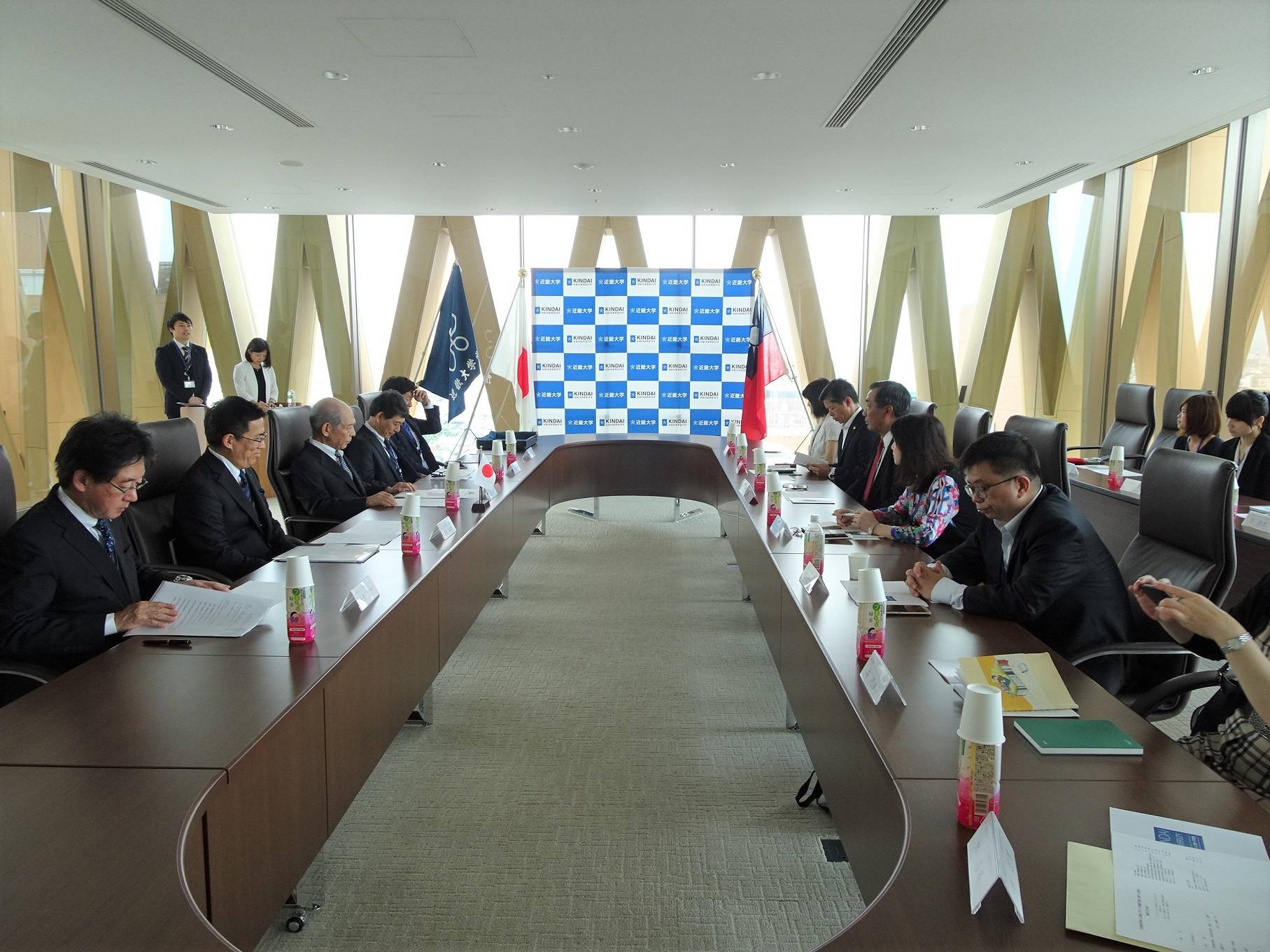 近大校長塩崎均說明該校與台灣的淵源極早,從1956年起每年有100多名台灣留學生在學,因此在台灣有近大校友會支部,與日本支部往來頻繁,去年4月新設立的國際學部學生目前前往台灣留學,預定一年,透過締約加強雙方關係。