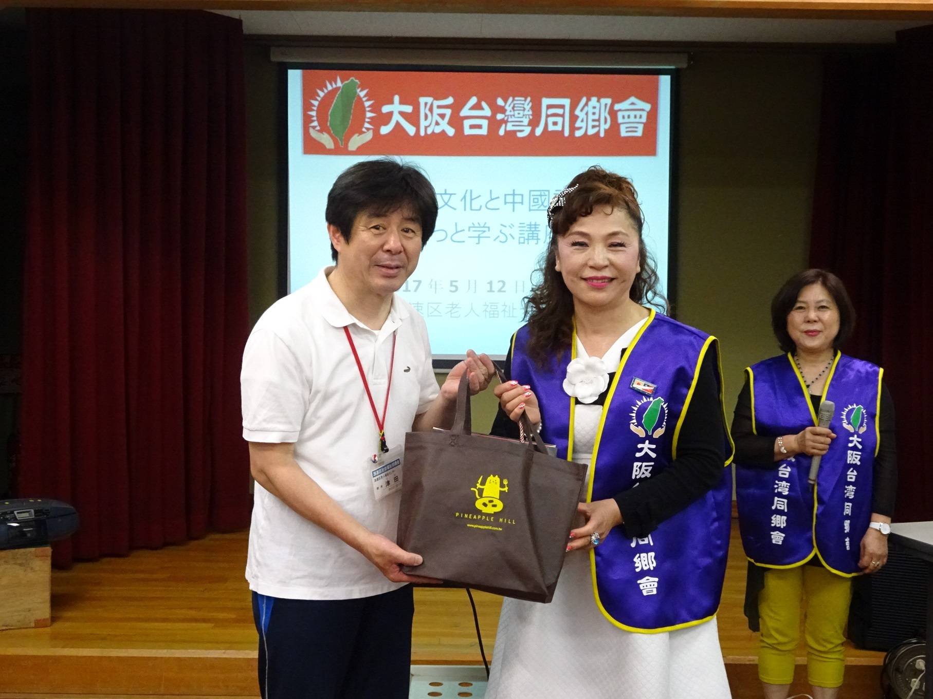 浪速區役所課長代理江頭勝彥與市民協働課長小原聰、係長細井孝悅撥空到場與民眾一同學習。浪速區不但有關西地區唯一教授繁體中文的大阪中華學校,並在2015年與台北市士林區締結友好交流協定。江頭勝彥感謝謝美香及大阪台灣同鄉會團隊為該地區首度舉辦台灣相關講座,更希望今後能提供更多台日民眾交流的平台。