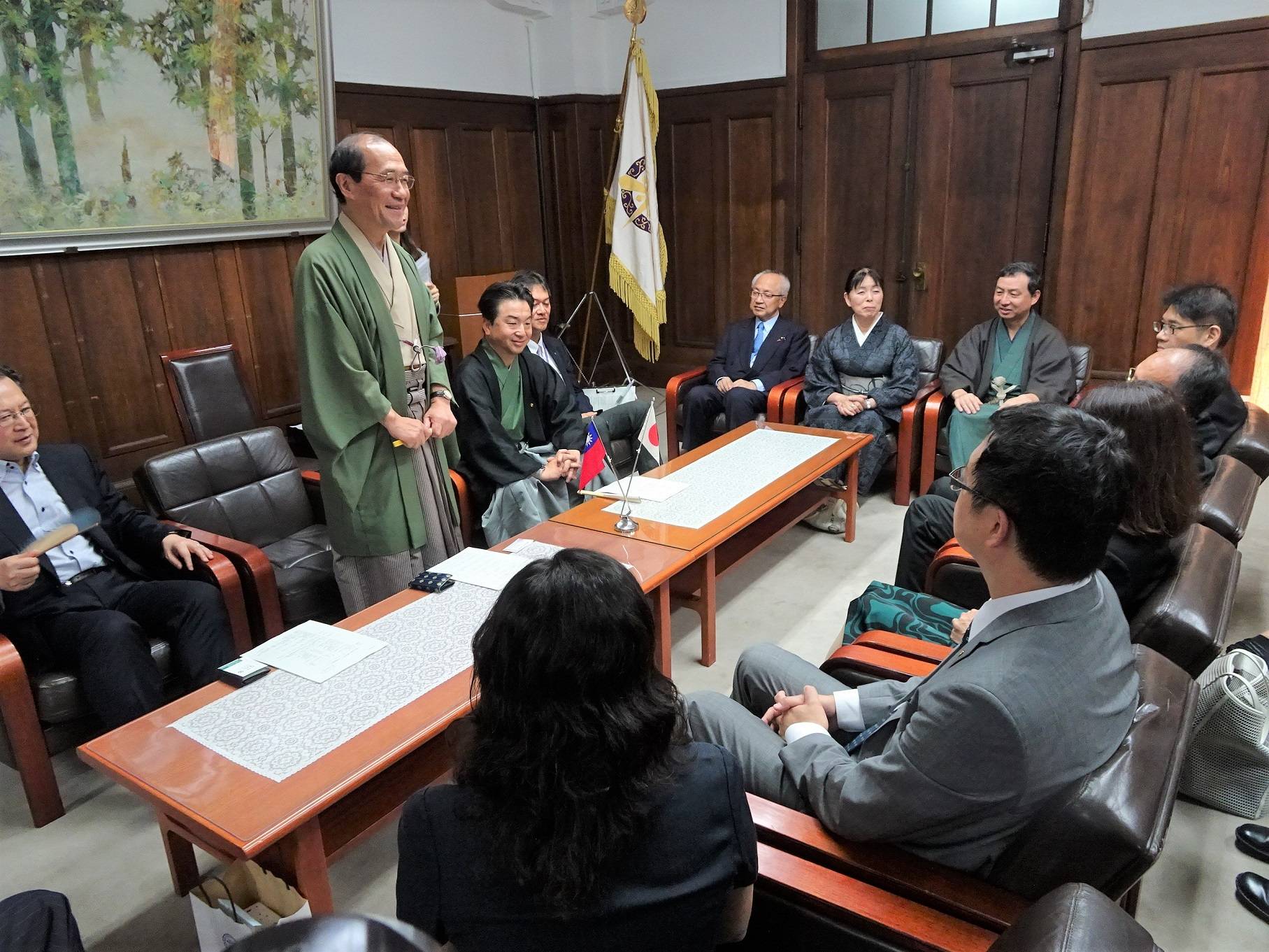 京都市長門川大作表示,京都市於30年前設立世界歷史都市聯盟,至今與世界各地113個歷史都市進行交流,台南也在5年前加入,京都與台南在城市交流、兩地議會交流等各方面關係密切;擁有38所大學及短期大學的京都也是學生的城市,有人口的百分之十、約15萬名學生在京都求學,其中包括9千名留學生,歡迎同學們將來有機會到京都來留學。
