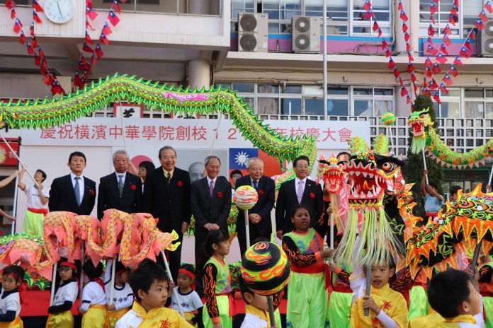 被稱為「國父紀念校」的橫濱中華學院於11月12日舉行校慶大會,歡度創校120週年,僑務委員會委員長吳新興親自來日祝賀,並感謝校方為僑界培養人才,校方也以難得一見的12隻「舞龍」節目來為學校賀壽。