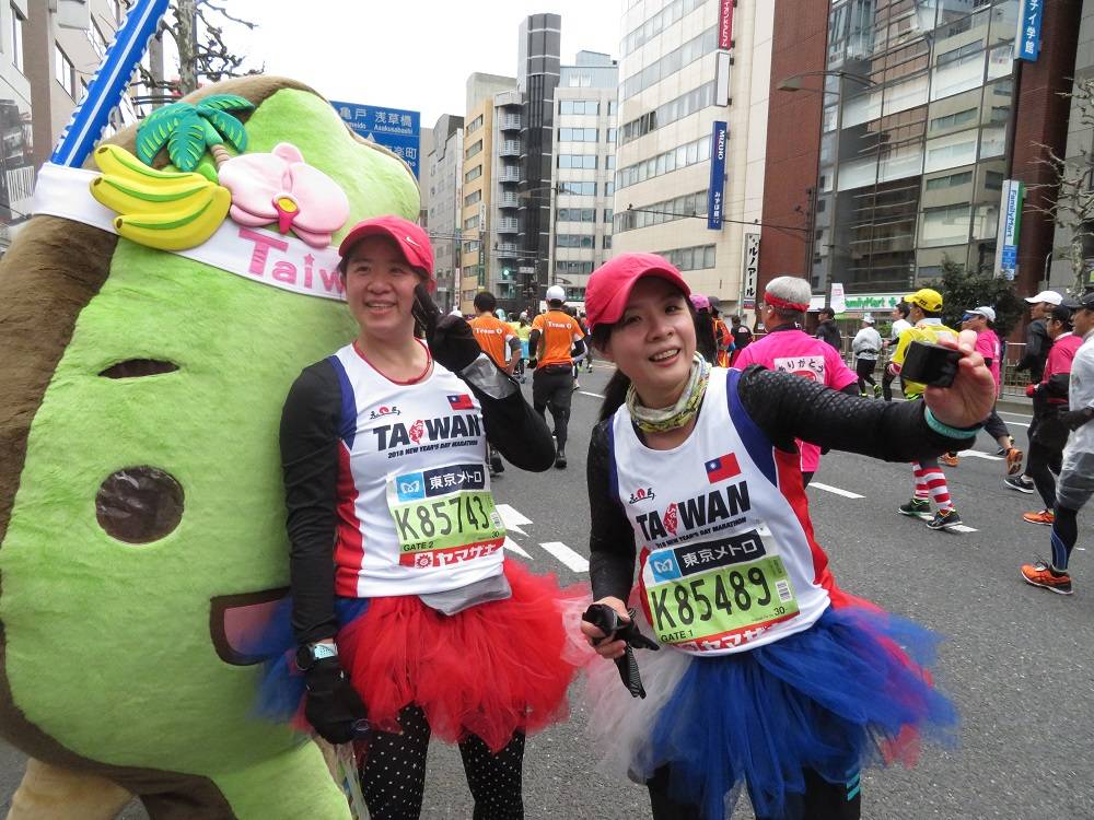 今年有約1000名台灣跑者參與日本東京馬拉松,在日台灣同鄉會、在日台灣婦女會、美麗島交流會等在日台灣人團體及從台灣來的跑者親友團25日一早集合在靖國大道為選手加油,大大的台灣加油標語及台灣達☆吉祥物非常顯眼,許多選手經過跟著用國語喊台灣加油,台灣選手更停下來跟台灣達☆合照。