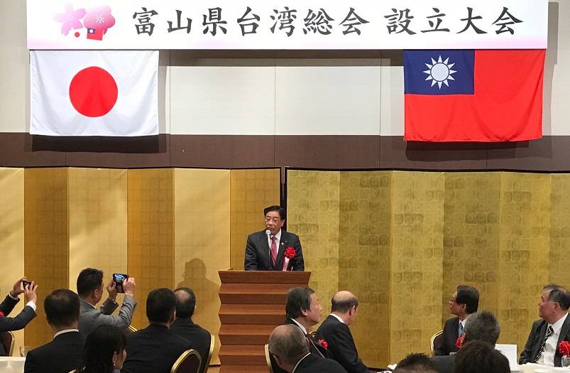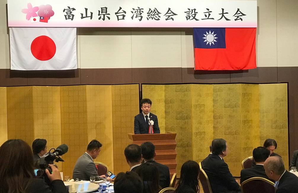 「富山縣台灣總會」共田吉孝會長也致詞表示該會將積極扮演雙方橋樑角色,介紹台灣及富山之美給雙方民眾,增進兩國交流。