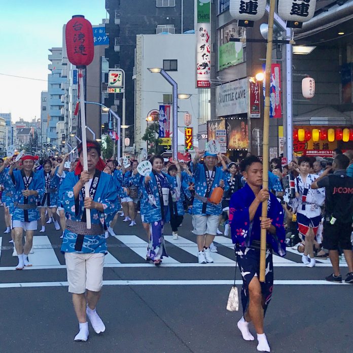 高圓寺阿波舞大會已有六十多年歷史,去年也曾到台灣演出,今年在杉並區長田中良的邀請下,由留日台灣同鄉會名譽會長尹世玲的帶領一百人組成台灣連,與關東.德島學生合同連一同演出,透過阿波舞讓更多民眾認識台灣,也充分展現出台灣人的熱情。