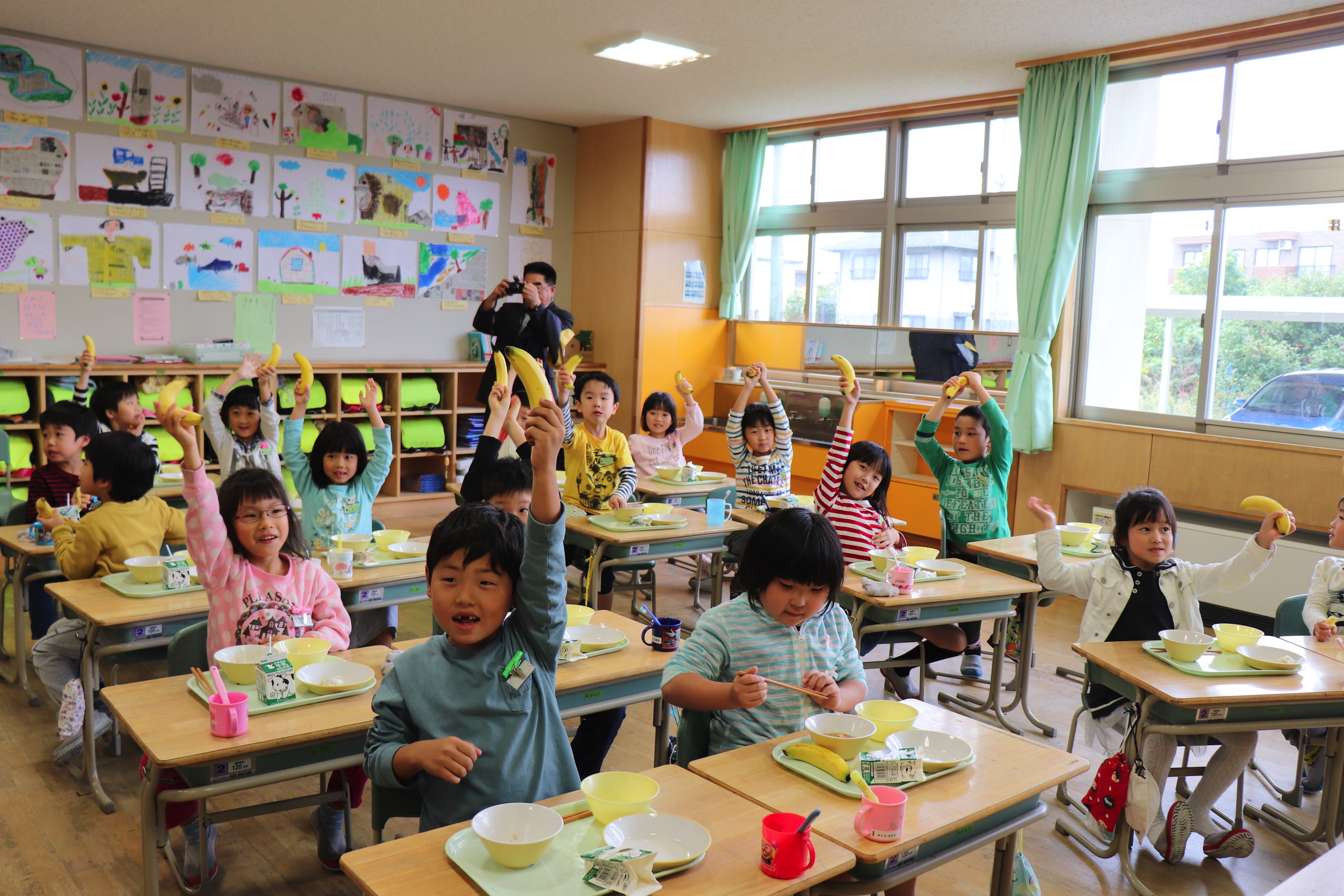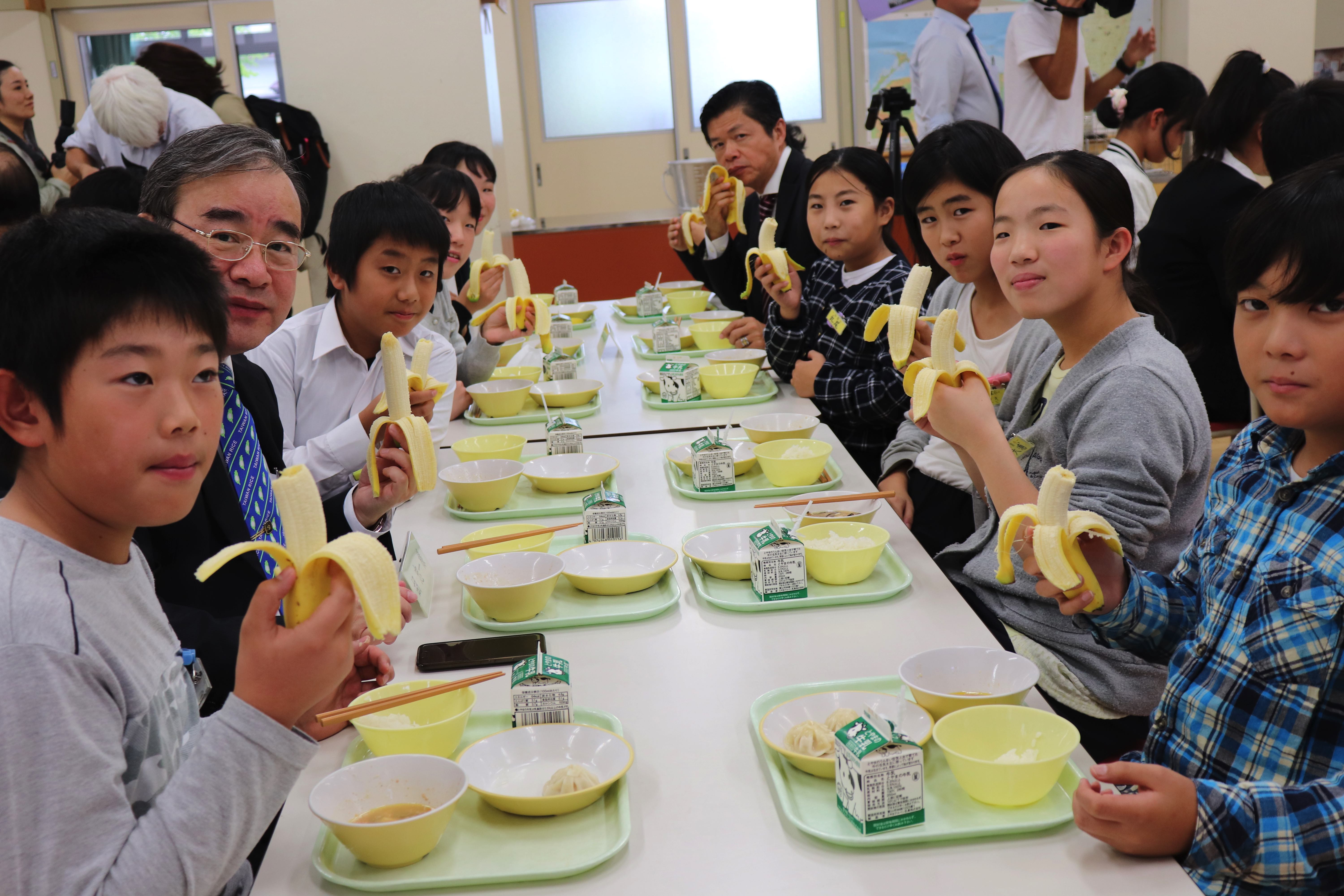 【富山/綜合報導】香蕉能說是台灣的代表性農產品之一,品質優於東南亞或南美洲生產的香蕉,為了將可口的香蕉推廣給日本民眾,並拓展新客源,行政院農委會農糧署10月11日特別將香蕉分享給富山市內全國中小、幼稚園學生,並於山室小學舉辦吃台灣香蕉會活動、簽訂合作備忘錄讓台灣蕉進軍富山,而台灣蕉也成功擄獲學生味蕾,品嘗後紛紛直呼又甜又好吃。