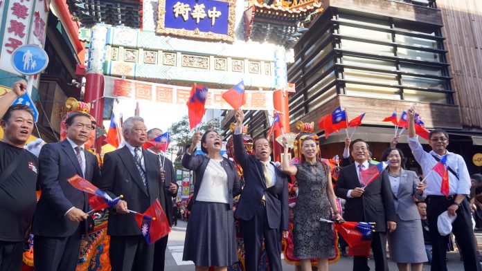 【橫濱/採訪報導】為了慶祝國慶,每年橫濱華僑總會都會於十月十日在橫濱中華學校、中華街舉辦雙十國慶藝能表演和遊行,今年共集結二十七個團體,一千多人的隊伍,駐日代表謝長廷、副代表郭仲熙、橫濱分處長陳桎宏伉儷及日本中華聯合總會長新垣旬子等僑領都一同參與,加上三太子的助陣,讓整個中華街熱鬧滾滾。