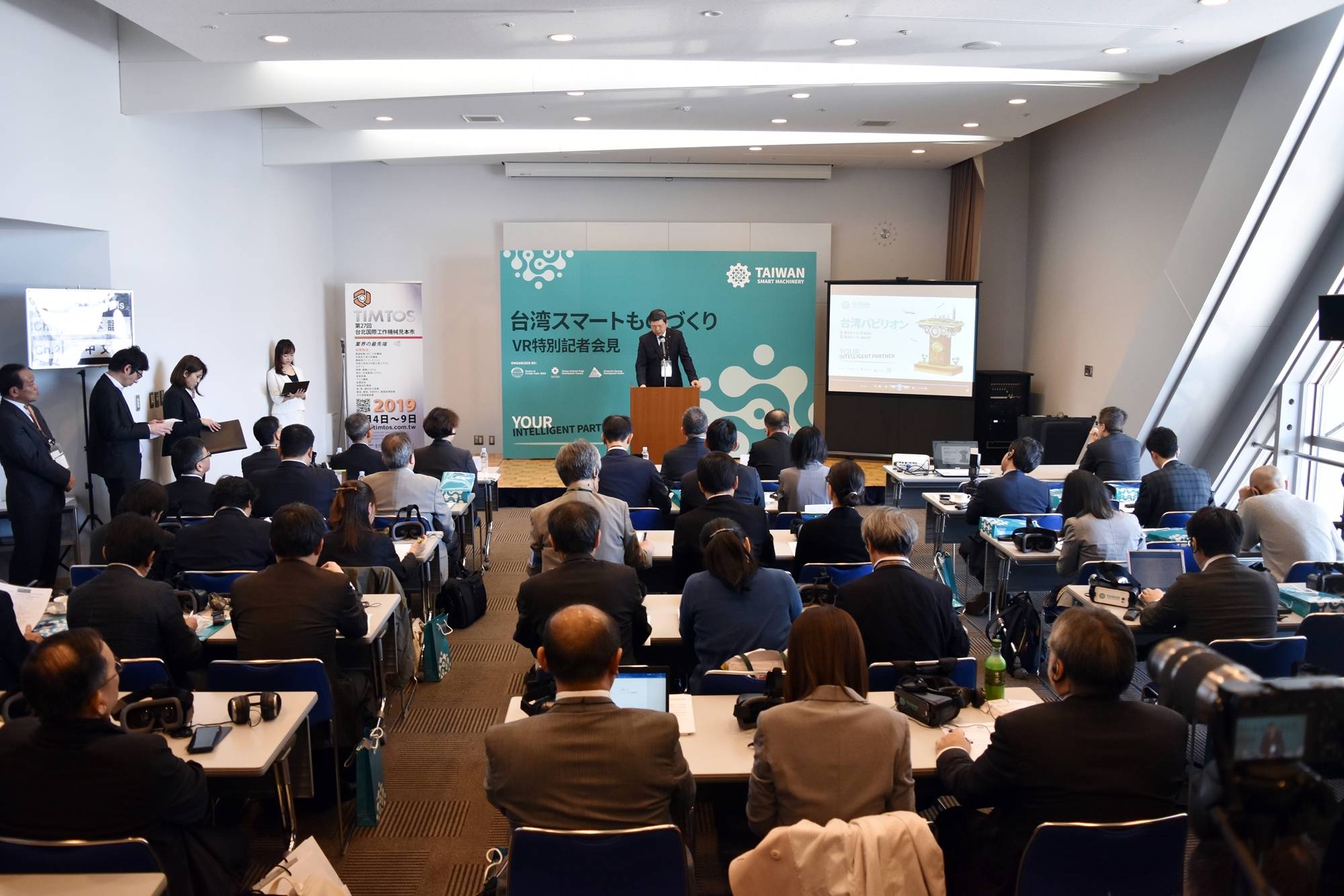 葉明水提到,會舉辦VR記者會是因為很多廠商的大型機器或是工廠實際的運作無法搬到日本來,因此使用VR的方式呈現出台灣風景、美食、工廠,讓日本業者和媒體身入其境的體驗。而外貿協會也有與東京有明展覽公司簽合作協議,互相協助支援,讓日台的工具機展成長茁壯,也讓企業得到更好的服務。