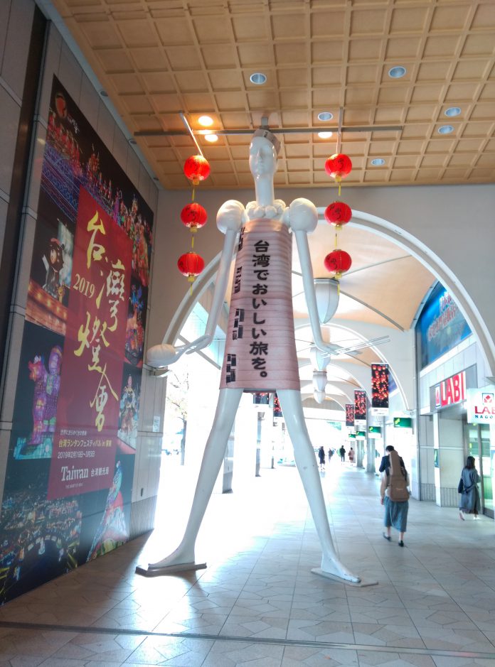 ナナちゃん人形(人偶)是名古屋車站附近著名的大型裝置藝術,也是愛知、三重、岐阜等東海地區知名的會面點,看中ナナちゃん的知名度,交通部觀光局首次在該地進行大型的廣告裝置,以最令日本民眾熟知和必吃的台灣美食—小籠包為發想,人偶的衣服以蒸籠造型為主,肩袖綴以小籠包,通道則垂吊掛著天燈旗面及燈籠,周遭牆面則帶出2019台灣燈會、小鎮漫遊年等主題,另外,為了配合在名古屋宣傳,也特別用「でら好き台湾!」做標語,「でら好き」是名古屋方言中,超喜愛的意思。